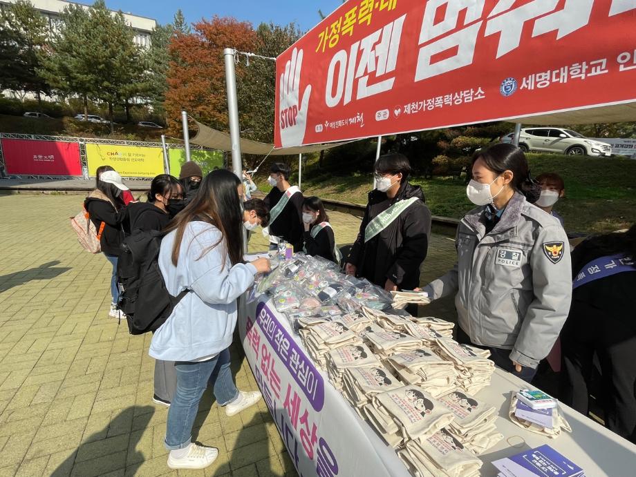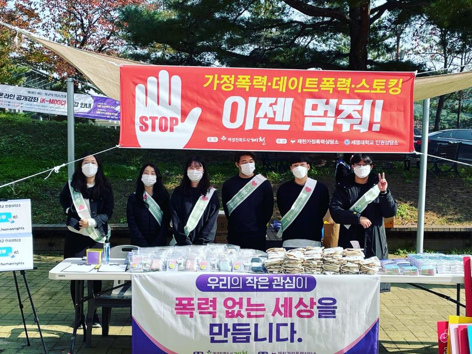 본문 시작 교내 폭력예방 캠페인 진행 CHARM케어상담센터 3636 2021-10-27 - 2021. 10. 26(화) - 학생회관 앞 폭력예방 캠페인 진행 - 인권상담소 인권서포터즈 / 제천 가정폭력상담소 / 제천 여성청소년과 목록 이전2021학년도 건강상담의 날 "자살예방교육"(10.26) 실시 다음 2021학년도 2학기 코로나-19마음치료 힐링프로그램 담당부서 : CHARM케어상담센터 담당자 : - 연락처 : 043-649-1789 최종수정일 : 2024-10-26 만족도조사 만족도 조사 이 페이지에서 제공하는 정보에 대하여 만족하시나요? 매우만족 만족 보통 불만족 매우불만족