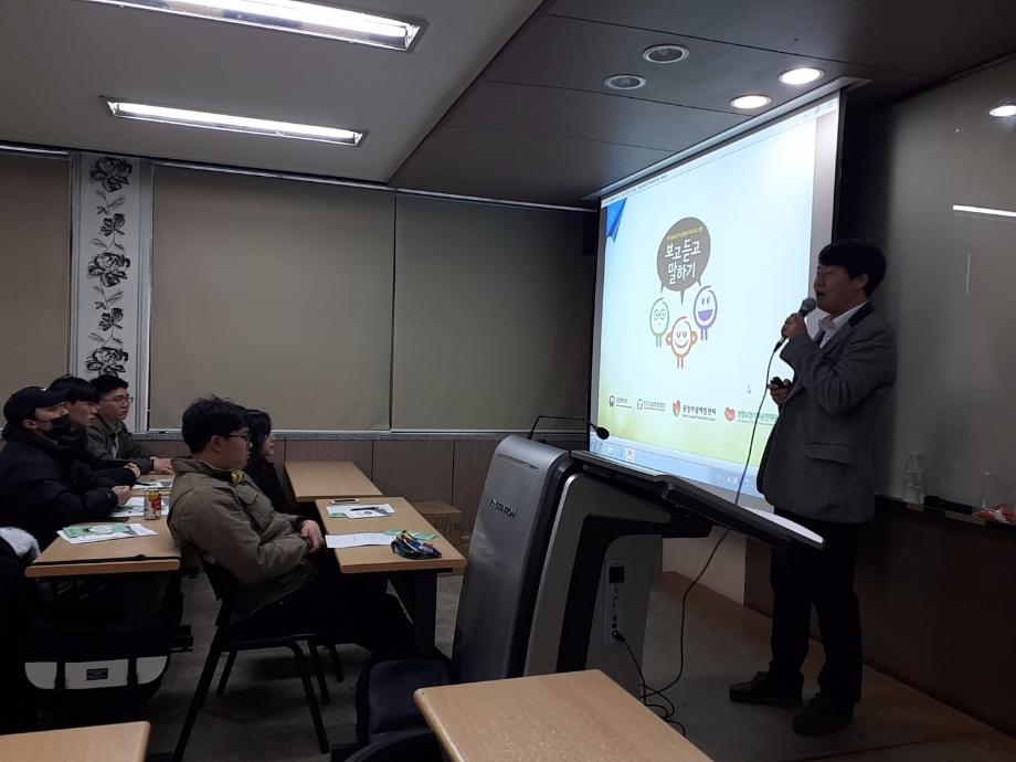 본문 시작 2019학년도 건강상담의 날 특강 "보고·듣고·말하기 교육" CHARM케어센터 4211 2019-04-10 2019학년도 1학기 건강상담의 날 특강 "보고·듣고·말하기 교육" 대상 : 사회복지학과 학생들 일시 : 2019년 4월 10일(수) 10:00~12:30 장소 : 사회과학관 113호 강사 : 제천시 정신건강복지센터 이용복 사회복지사 목록 이전[2019학년도 4월 건강상담의 날 특강 "보고·듣고·말하기 교육" ] 다음 2019학년도 5월 건강상담의 날 특강 "보고·듣고·말하기 교육" 담당부서 : CHARM케어상담센터 담당자 : - 연락처 : 043-649-1789 최종수정일 : 2024-10-26 만족도조사 만족도 조사 이 페이지에서 제공하는 정보에 대하여 만족하시나요? 매우만족 만족 보통 불만족 매우불만족
