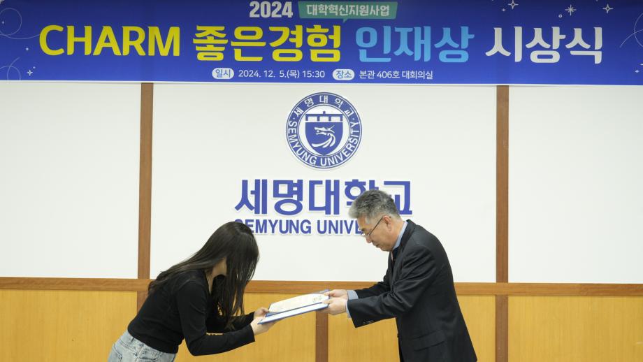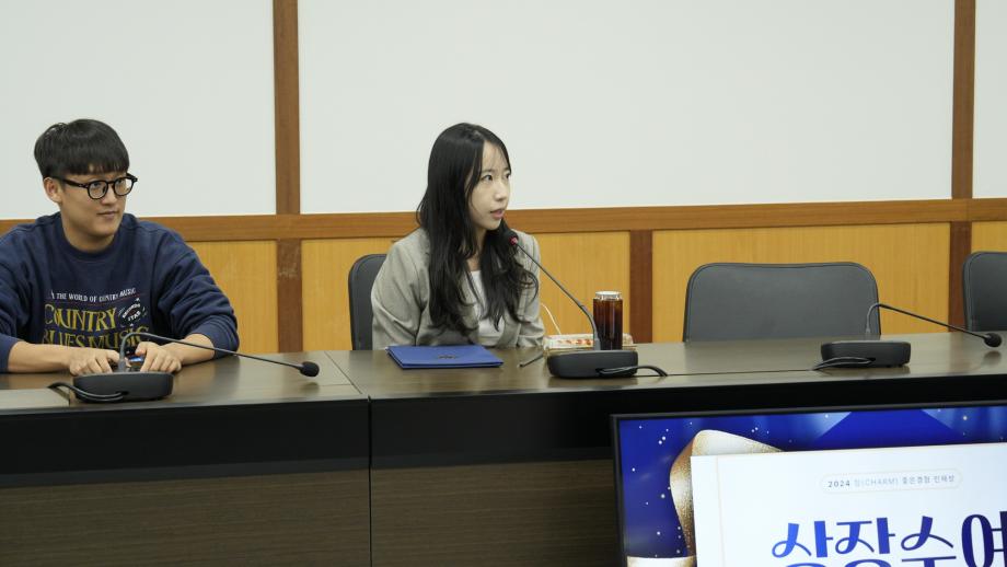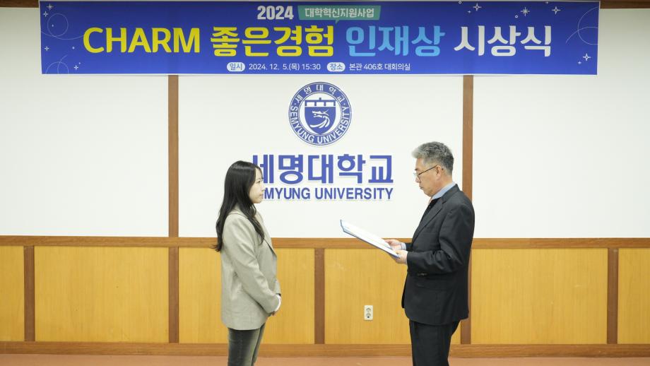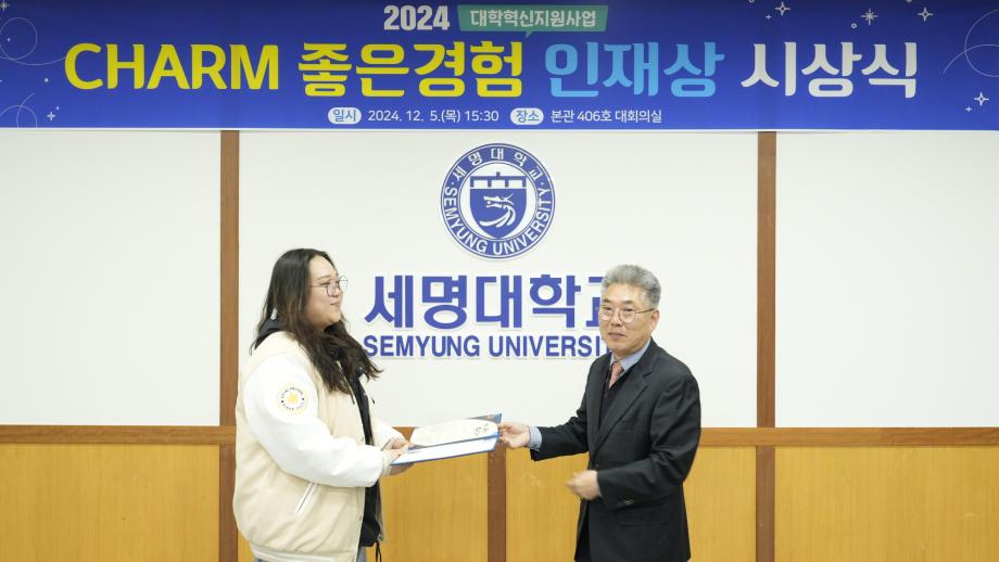 본문 시작 Photo SMU 세명소개 입학/취업 대학/대학원 학사지원 대학생활 연구/산학 기관/시설 SMU Story 소통·공감 학교기업 홈페이지가이드 학생활동 News@SMU 공지사항 보도자료 Photo SMU Media SMU 민송백일장 해카톤 경진대회 학생활동 페이스북 트위터 프린트 CHARM 좋은경험 인재상 시상식 홍보센터 4015 2024-12-05 CHARM 좋은경험 인재상 시상식 목록 이전제3회 학생위원회 최종보고회 다음 2025 신입생 오리엔테이션 '꿈설계학기' 담당부서 : 홍보센터 담당자 : 홍보센터 연락처 : 043-649-1175 최종수정일 : 2024-10-26 만족도조사 만족도 조사 이 페이지에서 제공하는 정보에 대하여 만족하시나요? 매우만족 만족 보통 불만족 매우불만족