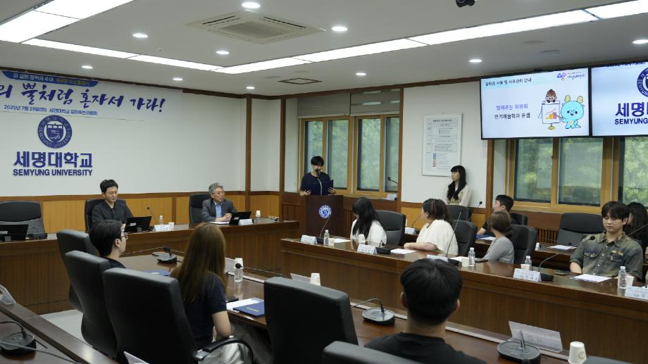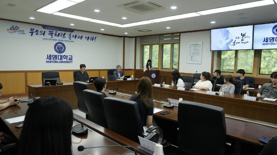 본문 시작 Photo SMU 세명소개 입학/취업 대학/대학원 학사지원 대학생활 연구/산학 기관/시설 SMU Story 소통·공감 학교기업 홈페이지가이드 학생활동 News@SMU 공지사항 보도자료 Photo SMU Media SMU 민송백일장 해카톤 경진대회 학생활동 페이스북 트위터 프린트 밀어주는 위원회 제4회 무소출정식 홍보센터 2800 2025-07-29 밀어주는 위원회 꿈 실현 장학금 수여 제4회 무소출정식 목록 이전2025 자기설계 해외배낭연수 발대식 다음 2025 제10기 세명대학교 하계 해외봉사단 발대식 담당부서 : 홍보센터 담당자 : 홍보센터 연락처 : 043-649-1175 최종수정일 : 2024-10-26 만족도조사 만족도 조사 이 페이지에서 제공하는 정보에 대하여 만족하시나요? 매우만족 만족 보통 불만족 매우불만족