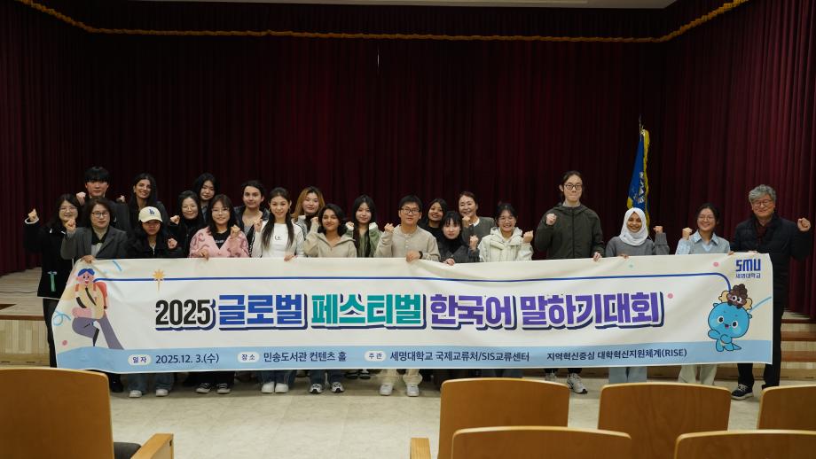 본문 시작 Photo SMU 세명소개 입학/취업 대학/대학원 학사지원 대학생활 연구/산학 기관/시설 SMU Story 소통·공감 학교기업 홈페이지가이드 학생활동 News@SMU 공지사항 보도자료 Photo SMU Media SMU 민송백일장 해카톤 경진대회 학생활동 페이스북 트위터 프린트 제1회 글로벌페스티벌 홍보센터 1879 2025-12-03 제1회 글로벌페스티벌 목록 이전인문예술대학 콘텐츠페스티벌 다음 2025학년도 전기학위수여식 담당부서 : 홍보센터 담당자 : 홍보센터 연락처 : 043-649-1175 최종수정일 : 2024-10-26 만족도조사 만족도 조사 이 페이지에서 제공하는 정보에 대하여 만족하시나요? 매우만족 만족 보통 불만족 매우불만족