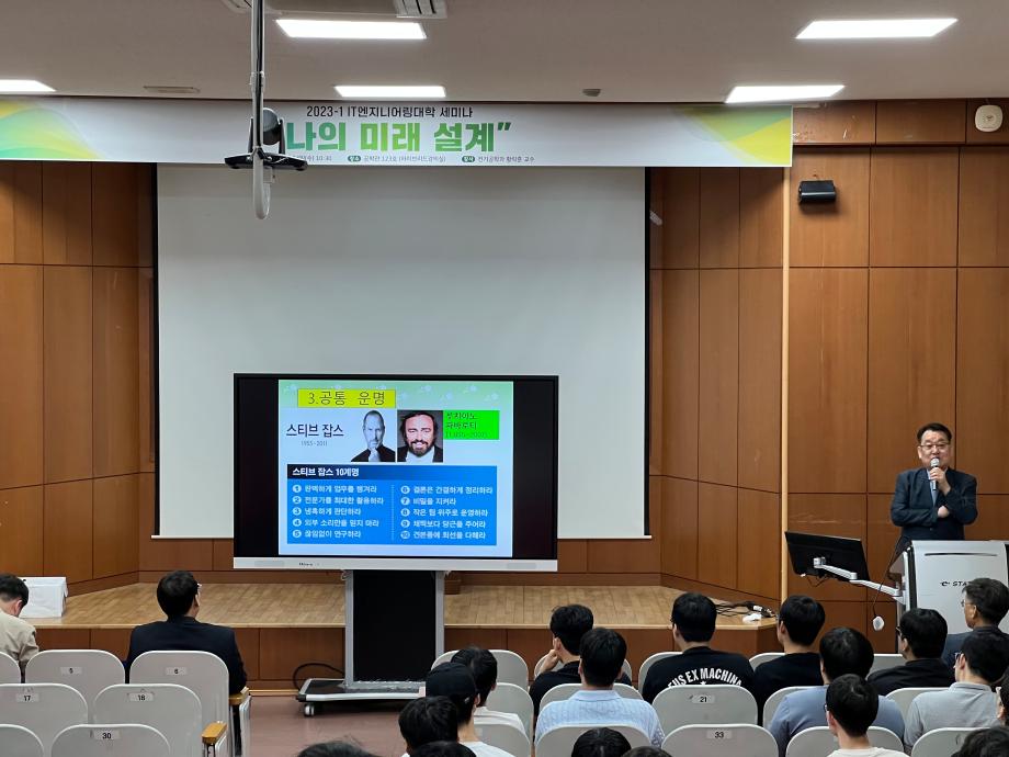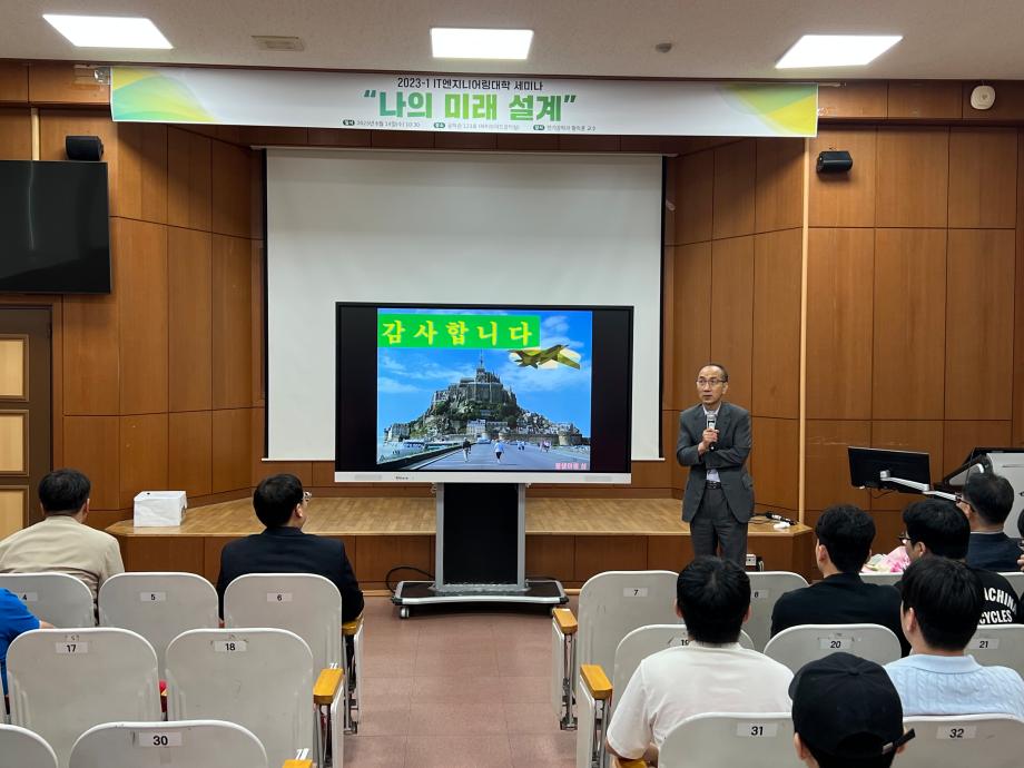 본문 시작 홈으로 커뮤니티 대학소개 학과소개 입학안내 커뮤니티 홈페이지가이드 포토갤러리 대학소식 학과소식 자료실 포토갤러리 포토갤러리 페이스북 트위터 프린트 2023-1학기 학생과 함께하는 세미나 개최 IT엔지니어링대학 2614 2023-06-15 IT엔지니어링대학에서는 재학생들의 학습역량 강화 및 대학 생활 만족도 제고를 위하여 '학생과 함께하는 세미나'를 2023년 6월 14일(수) 공학관 123호에서 개최하였다. 이번 세미나는 '나의 미래 설계 (성공하는 삶을 위하여)' 주제로 황락훈(전기공학과) 교수님이 발표를 하였으며, 학생들에게 경험담과 앞으로의 미래 사회에서 공과대학 학생으로서의 비전을 알 수 있는 좋은 시간이 되 목록 이전제1회 청소년 창의융합(AI-STEAM)행사 참여 다음 2023-1학기 학생과 함께하는 세미나 개최 담당부서 : AI융합대학 담당자 : - 연락처 : 043-649-7422 최종수정일 : 2024-10-26 만족도조사 만족도 조사 이 페이지에서 제공하는 정보에 대하여 만족하시나요? 매우만족 만족 보통 불만족 매우불만족
