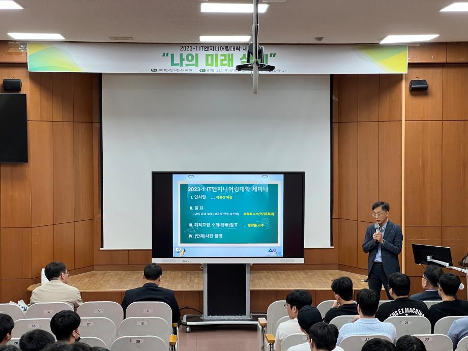 본문 시작 홈으로 커뮤니티 대학소개 학과소개 입학안내 커뮤니티 홈페이지가이드 포토갤러리 대학소식 학과소식 자료실 포토갤러리 포토갤러리 페이스북 트위터 프린트 2023-1학기 학생과 함께하는 세미나 개최 IT엔지니어링대학 2584 2023-06-15 IT엔지니어링대학에서는 재학생들의 학습역량 강화 및 대학 생활 만족도 제고를 위하여 '학생과 함께하는 세미나'를 2023년 6월 14일(수) 공학관 123호에서 개최하였다. 이번 세미나는 '나의 미래 설계 (성공하는 삶을 위하여)' 주제로 황락훈(전기공학과) 교수님이 발표를 하였으며, 학생들에게 경험담과 앞으로의 미래 사회에서 공과대학 학생으로서의 비전을 알 수 있는 좋은 시간이 되었다. 목록 이전2023-1학기 학생과 함께하는 세미나 개최 다음 2023 세명대학교 홍보영상 담당부서 : AI융합대학 담당자 : - 연락처 : 043-649-7422 최종수정일 : 2024-10-26 만족도조사 만족도 조사 이 페이지에서 제공하는 정보에 대하여 만족하시나요? 매우만족 만족 보통 불만족 매우불만족