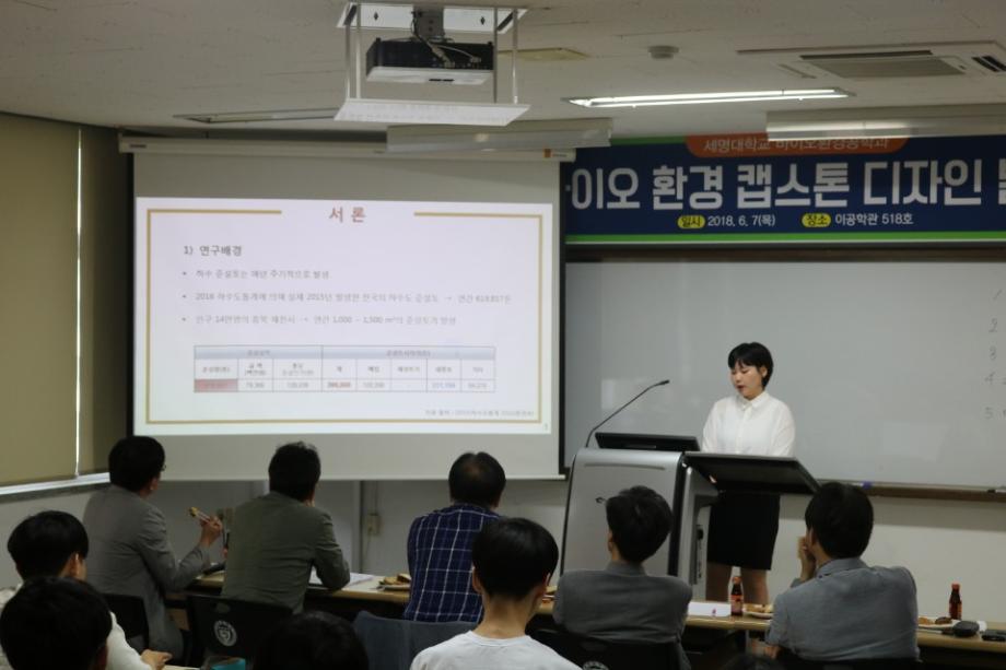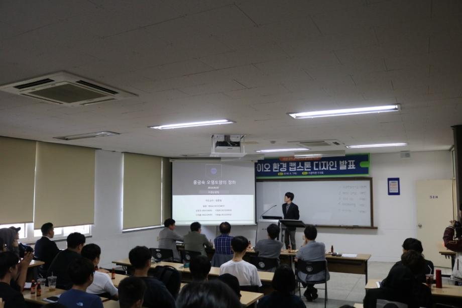 본문 시작 홈으로 커뮤니티 대학소개 학과소개 입학안내 커뮤니티 홈페이지가이드 포토갤러리 대학소식 학과소식 자료실 포토갤러리 포토갤러리 페이스북 트위터 프린트 2018학년도 바이오 환경 캡스톤 디자인 발표회 실시 IT엔지니어링대학 6518 2018-06-07 2018년 6월 7일(목) 11시 30분 부터 13시 30분까지 이공학관 518호에서 바이오 환경 캡스톤 디자인 발표를 진행 하였다. 바이오환경공학과 4학년 학생들은 2018학년도 1학기 동안 5개조(4학년)26명이 연구에 참여했으며, 1학기 동안 쉽지 않은 주제로 연구를 하느라 고생하였다. 발표회에는 재학생 80여명이 참석하여 선배들의 연구내용을 들었다. 이번 연구는 졸업논문을 대체한 것이다. 목록 이전2018학년도 대학일자리센터 지원 IT엔지니어링대학 임직원 취업특강 1차실시 다음 2018 전자공학과 캡스톤디자인 졸업작품 발표회 실시 담당부서 : AI융합대학 담당자 : - 연락처 : 043-649-7422 최종수정일 : 2024-10-26 만족도조사 만족도 조사 이 페이지에서 제공하는 정보에 대하여 만족하시나요? 매우만족 만족 보통 불만족 매우불만족