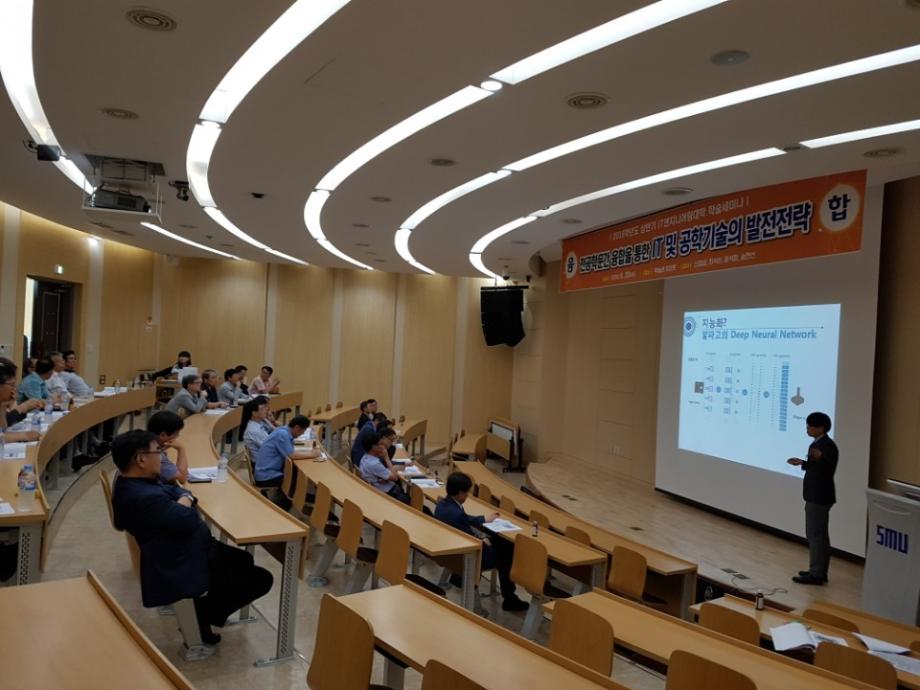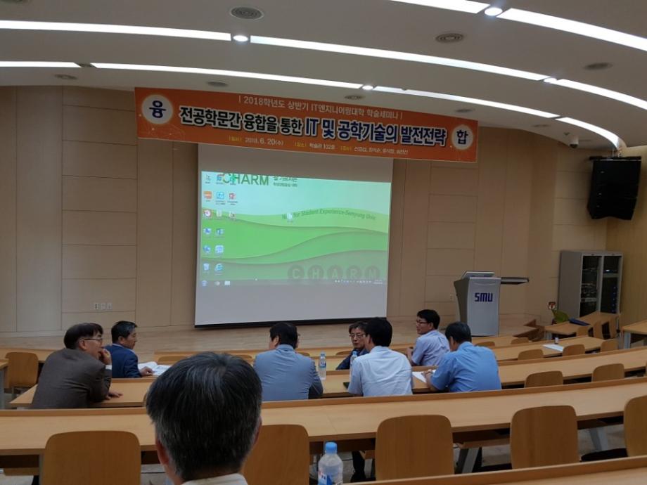 2018학년도 6월 20일 제 2회 IT융합엔지니어링대학 학술세미나가 학술관 102호에서 개최 되었다. 전문 학문간의 융합을 통한 IT 및 공학기술의 발전 전략이란 주제로 4개학과 교수님들이 그간 연구한 내용들을 발표하는 것으로, 각자의 전공에 적용할 지 등으로 매우 관심이 높았다. 총장님을 비롯한 40여명의 단과대학 교수님들과 대학원생들이 참여한 가운데 진행된 세미나는 대학기본역량평가 통과라는 기쁜 소식을 전하는 총장님의 덕담으로 시작되었다.