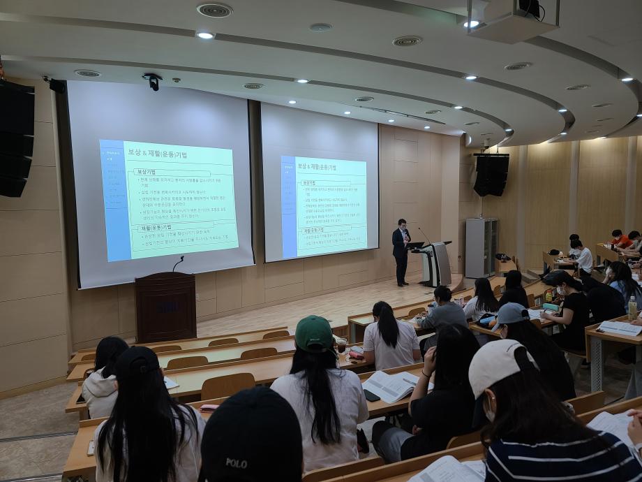 연하재활전문가 소개강좌 프로그램은 작업치료학과를 졸업한 후 작업치료사로써 보건계열전문인으로써 그 역량을 발휘할수 있도록 도와주는 전문가 강좌 프로그램입니다. 세명대학교의 지원금을 통해 대한연하재활학회(대한작업치료협회 분과 학회)에서 임상가(작업치료사)를 대상으로 강의를 진행하는 강사진들을 초빙하여 교육을 실시하고, 그 교육 후에 이수증을 발급해주고 있습니다.