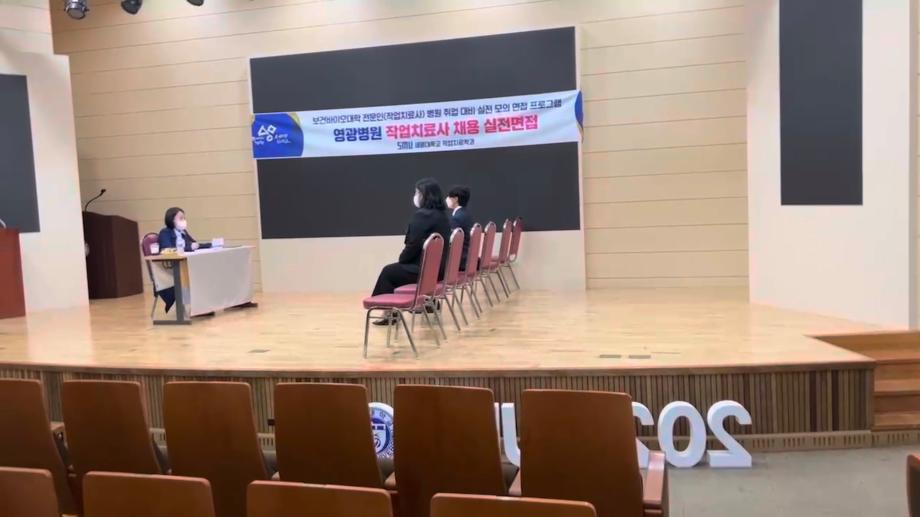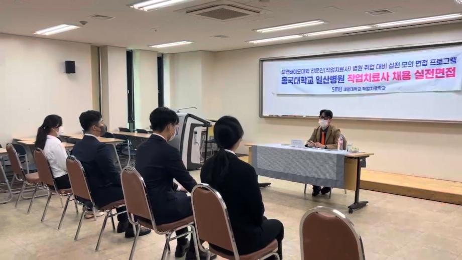 세명대학교 작업치료학과에서는 4학년 예비 졸업생을 대상으로 전문적인 면접 대비 특강 및 모의 면접 준비를 통하여 취업률 제고와 각 병원의 실무진들을 통한 작업치료사의 면접 경향 파악과 실전 경험을 제공하고자 매년 9월 실전모의면접프로그램을 진행하고 있습니다.