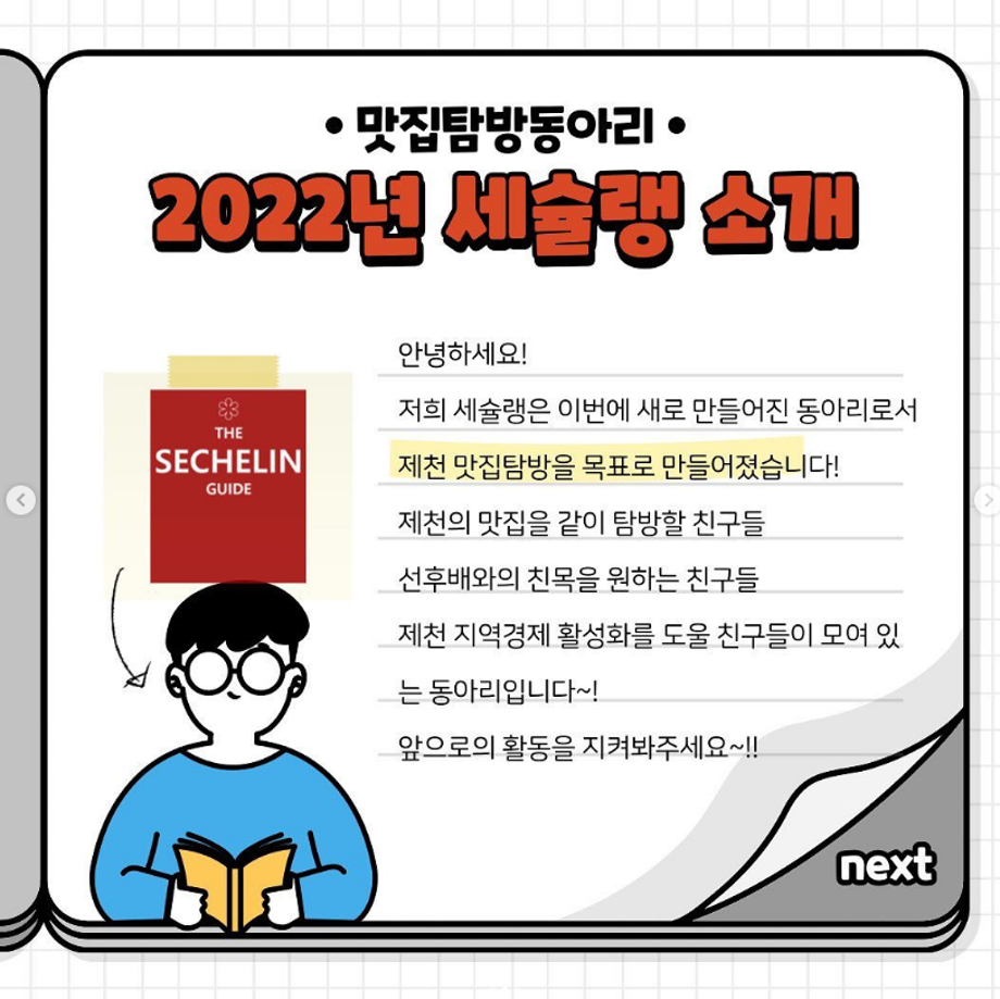 본문 시작 홈으로 커뮤니티 학과소개 진로 및 취업 학과과정 커뮤니티 SNS 홈페이지가이드 학과 소식 및 행사 학과공지 학과 소식 및 행사 대학생활 엿보기 어쩌다 출근 챌린지 학생회 동아리 통학버스 시간표 학과 소식 및 행사 페이스북 트위터 프린트 동아리 소개[세슐랭] 작업치료학과 4492 2022-10-17 목록 이전동아리 소개[브레인] 다음 2022-2학기 중간고사 담당부서 : 작업치료학과 담당자 : - 연락처 : 043-649-1632 최종수정일 : 2024-10-26 만족도조사 만족도 조사 이 페이지에서 제공하는 정보에 대하여 만족하시나요? 매우만족 만족 보통 불만족 매우불만족