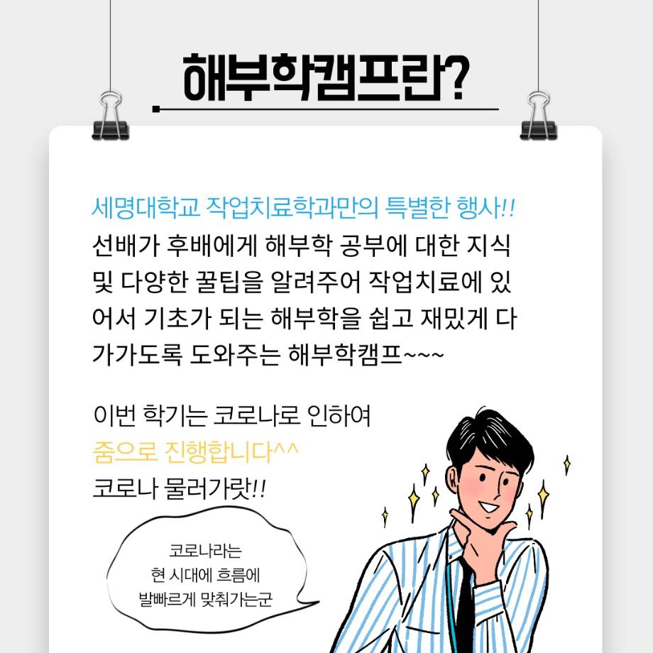 다른 학교들과는 비교되는 세명대 작업치료학과만의 특별한 활동인 만큼 학생들의 많은 참여가 있었으면 좋겠습니다😀😀