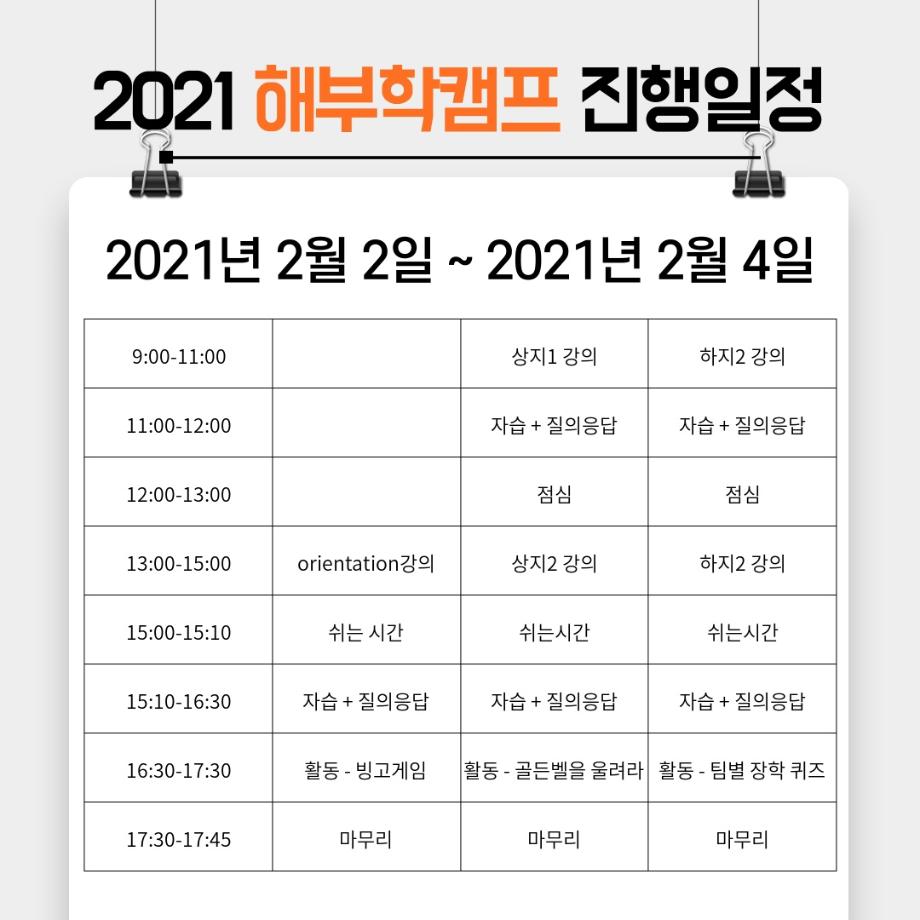 2021년 2월 2일부터 2021년 2월 4일까지 진행되는 3일간의 해부학 캠프는 코로나라는 현 상황에 맞춰서 줌으로 진행되며 지금까지 진행되는 해부학 캠프와는 다른 방식으로 진행을 계획하였습니다😊😊😊