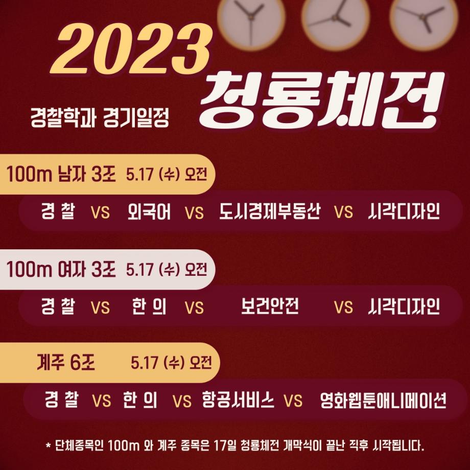 본문 시작 홈으로 커뮤니티 학과소개 교수소개 학과과정 커뮤니티 홈페이지가이드 포토갤러리 학부공지 학과일정 포토갤러리 학생회 동아리 포토갤러리 페이스북 트위터 프린트 2023 청룡체전 안내 경찰학과 3913 2023-05-14 5월 17일부터 19일은 청룡체전 기간입니다 ! 4년만에 대면으로 이루어지는 청룡체전인만큼 경기에 출전하는 체전선수들에게 많은 관심과 응원 부탁드립니다! 목록 이전2023년 4월 사진공보전 이벤트 당첨자 발표 다음 2023년 5월 사진공모전 이벤트 안내 만족도조사 만족도 조사 이 페이지에서 제공하는 정보에 대하여 만족하시나요? 매우만족 만족 보통 불만족 매우불만족
