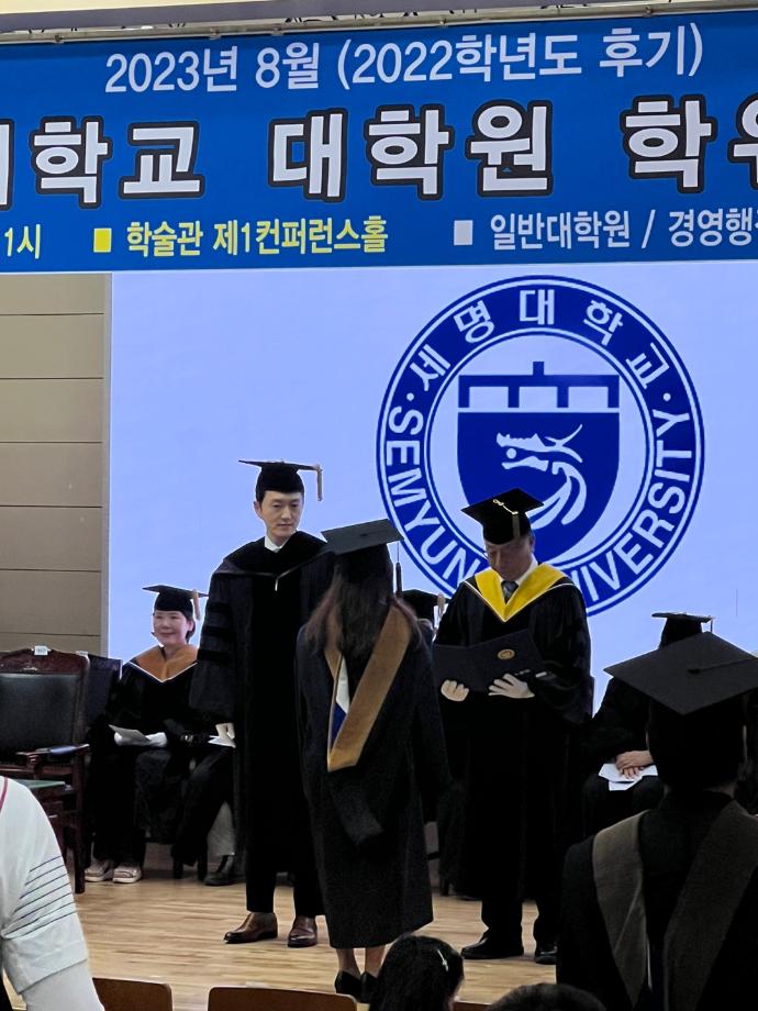 본문 시작 홈으로 커뮤니티 학과소개 학생진로 교과과정 커뮤니티 학과 SNS 홈페이지가이드 학과 갤러리 공지사항 대학원 학과 갤러리 학과 이야기 동아리 학생회 학과 갤러리 페이스북 트위터 프린트 [대학원] 2023년도 후기 (석, 박사) 학위 수여 경영학과 5226 2023-08-09 2023. 8. 9(수) 학술관에서 2022년도 후기 석, 박사 학위 수여식이 진행되었습니다. 행사에는 사회과학대학 학장님이신 김계수 교수님, 대학원 경영학과 주임 교수님이신 함상우 교수님께서 참석하셔서 축하해주셨습니다. 목록 이전[경영학과] 제천여고 지도 다음 [경영학과] 2023년도 후기 학위 수여식(졸업식) 담당부서 : 경영학과 담당자 : - 연락처 : 043-649-1766 최종수정일 : 2024-10-26 만족도조사 만족도 조사 이 페이지에서 제공하는 정보에 대하여 만족하시나요? 매우만족 만족 보통 불만족 매우불만족