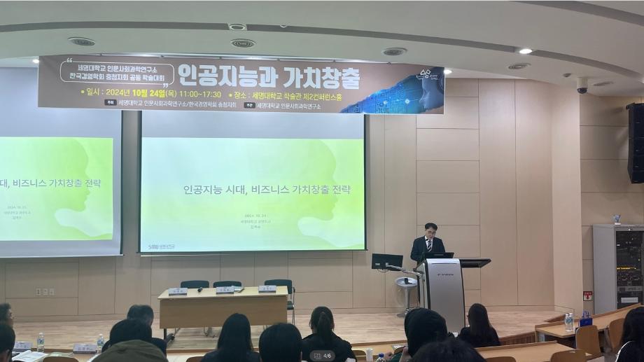 세명대학교 경영학과 교수이면서 한국경영학회 충청지회장을 맡고 있는 김계수 교수는 세명대학교 인문사회과학연구소(김기태 소장)와 공동으로 10월 24일에 학술관 제2컨퍼런스룸에서 '인공지능과 가치창출'이라는 주제로 추계학술대회를 개최하였다.
