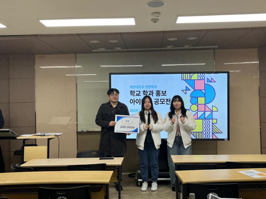 본문 시작 홈으로 커뮤니티 학과소개 학생진로 교과과정 커뮤니티 학과 SNS 홈페이지가이드 학과 갤러리 공지사항 대학원 학과 갤러리 학과 이야기 동아리 학생회 학과 갤러리 페이스북 트위터 프린트 [경영학과] 학과, 학교 홍보 아이디어 공모전 수상 경영학과 2121 2024-11-26 학과, 학교 홍보 아이디어 공모전이 11월 25일 (월)에 진행되었습니다. - 수상 결과 대상: 김채은, 이수빈 (22) 최우수상: 이예진, 조윤아 (22) 우수상: 이소명, 이유민 (22) 수상을 축하드립니다. 목록 이전[경영학과] 학회장 선거 안내 다음 [경영학과] 제 3회 경영 그래미어워드 담당부서 : 경영학과 담당자 : - 연락처 : 043-649-1766 최종수정일 : 2024-10-26 만족도조사 만족도 조사 이 페이지에서 제공하는 정보에 대하여 만족하시나요? 매우만족 만족 보통 불만족 매우불만족