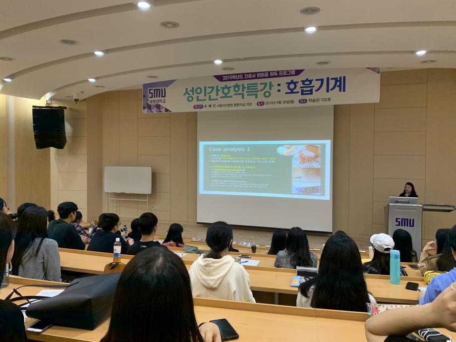 본문 시작 홈으로 학과특성화 사업 학과소개 교수소개 교육과정 학과소식 학과특성화 사업 커뮤니티 홈페이지가이드 2019년 2026년 2025년 2024년 2023년 2022년 2021년 2020년 2019년 2018년 2017년 2016년 2015년 2014년 2019년 페이스북 트위터 프린트 성인간호학특강 : 호흡기계 간호학과 7719 2019-09-30 1. 일시 : 2019년 9월 30일(월) 2. 특강자 : 서울아산병원 중환자실 유혜진 과장 3. 장소 : 학술관 102호 4. 내용 : 성인간호학 호흡기계 학습 내용 중 이해도가 낮은 인공호흡기 부분 심층 대비 목록 이전Peritoneal Dialysis Simulator Course 다음 성인간호특강 : 심혈관계 담당부서 : 간호학과 담당자 : - 연락처 : 043-649-1357 최종수정일 : 2024-10-26 만족도조사 만족도 조사 이 페이지에서 제공하는 정보에 대하여 만족하시나요? 매우만족 만족 보통 불만족 매우불만족