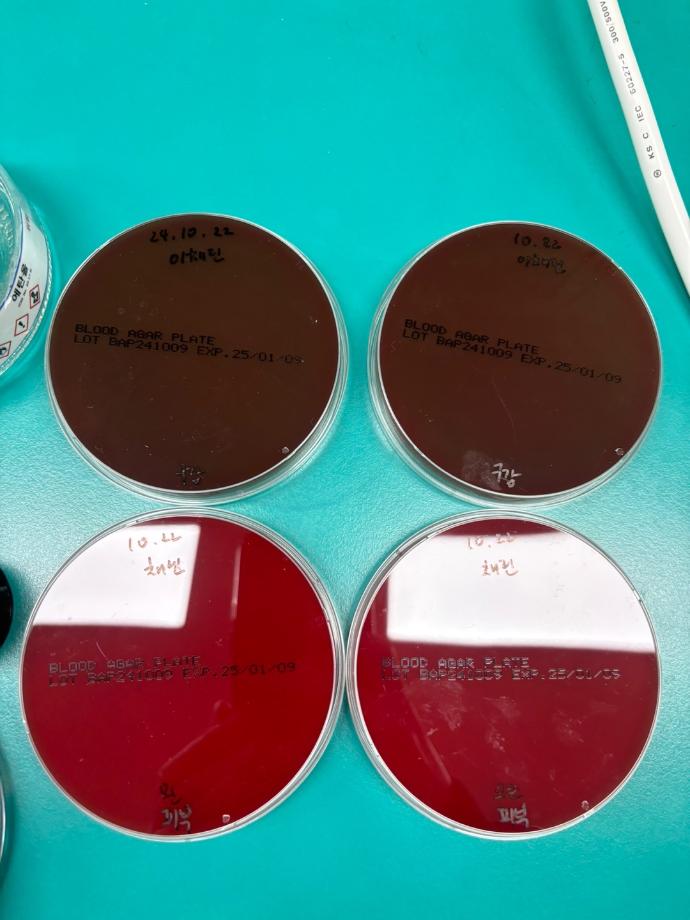 본문 시작 구강, 피부 상재균 배양 & 회식 임상병리학과 1539 2024-10-22 구강, 피부 상재균 배양했습니다! 이후 회식을 진행했습니다! 목록 다음 환경배양 해서 자란 균 동정(Oxidase, Catalase, Gram stain) 진행 다음 자란 균들 단일배양 담당부서 : 임상병리학과 담당자 : - 연락처 : 043-649-1537 최종수정일 : 2024-10-26 만족도조사 만족도 조사 이 페이지에서 제공하는 정보에 대하여 만족하시나요? 매우만족 만족 보통 불만족 매우불만족