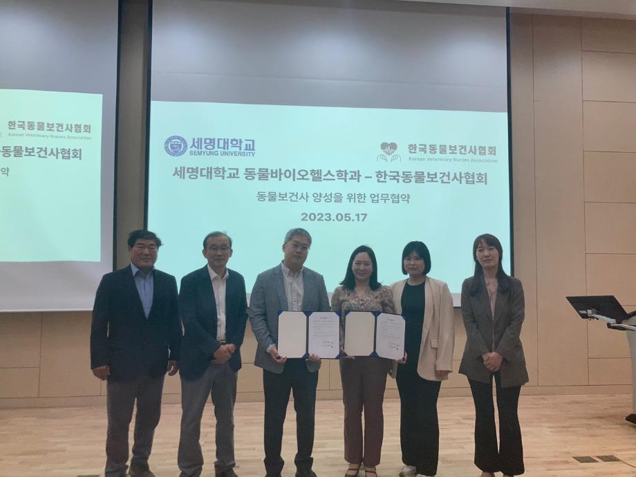 본문 시작 홈으로 학과게시판 학과소개 교육과정 학과게시판 관련사이트 홈페이지가이드 포토갤러리 학과소식 포토갤러리 동아리 소개 포토갤러리 페이스북 트위터 프린트 동물바이오헬스학과_한국동물보건사협회 업무 협약 체결 동물바이오헬스학과 2044 2023-05-19 2023년 5월17일 세명대학교 동물바이오헬스학과는 한국동물보건사협회와 업무협약을 맺었습니다. 업무협약의 내용은 세명대학교 동물바이오헬스학과 학생이 동물보건사가 되기 위해 필요한 상담 및 실습등을 지원할 계획입니다. 금번 업무협약과 동시에 한국동물보건사협회 김수연 회장님께서 동물보건사의 현황에 대한 내용으로 특강을 진행해 주셨습니다. 이번 행사를 통해 우리 학생들이 동물보건사라는 직업에 대하여 한걸음 더 가까워지는 계기가 될 수 있었습니다. 목록 이전2023 동물바이오헬스학과 MT 다음 동물바이오헬스학과 제천제일고등학교 전공체험(프리칼리지) 담당부서 : 동물보건학과 담당자 : - 연락처 : 043-649-1627 최종수정일 : 2024-10-26 만족도조사 만족도 조사 이 페이지에서 제공하는 정보에 대하여 만족하시나요? 매우만족 만족 보통 불만족 매우불만족