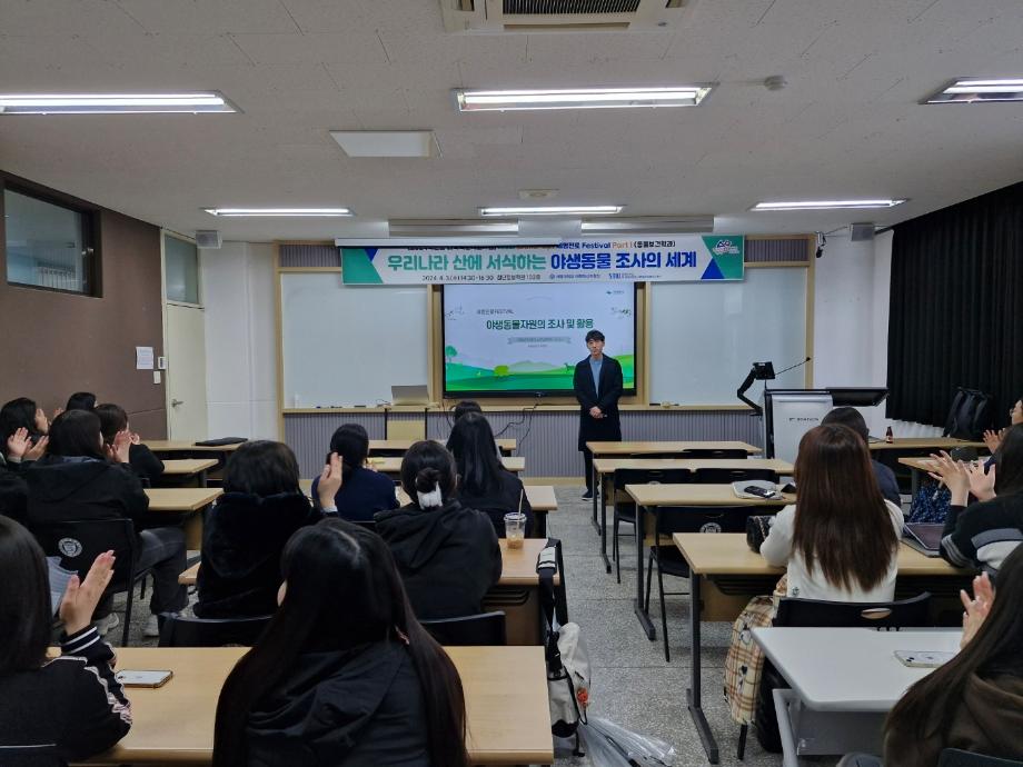 본문 시작 홈으로 학과게시판 학과소개 교육과정 학과게시판 관련사이트 홈페이지가이드 포토갤러리 학과소식 포토갤러리 동아리 소개 포토갤러리 페이스북 트위터 프린트 진로페스티벌 "야생동물 조사의 세계" 동물보건학과 1823 2024-04-22 2024년 1학기 진로페스티벌 프로그램으로 소백산 국립공원 북부사무소 (단양소재)에 근무하시는 최영준 계장님을 초청하였습니다. 소백산 국립공원에서 진행중인 소백산 서식 생물자원 조사와 관련된 재미있는 이야기를 들었습니다. 동물원만 생각했던 야생동물의 세계가 우리 주변의 산으로 확대 되었습니다. 목록 이전동물원에 다녀왔습니다!!!! 다음 아모니멀 수제간식 나눔행사 담당부서 : 동물보건학과 담당자 : - 연락처 : 043-649-1627 최종수정일 : 2024-10-26 만족도조사 만족도 조사 이 페이지에서 제공하는 정보에 대하여 만족하시나요? 매우만족 만족 보통 불만족 매우불만족