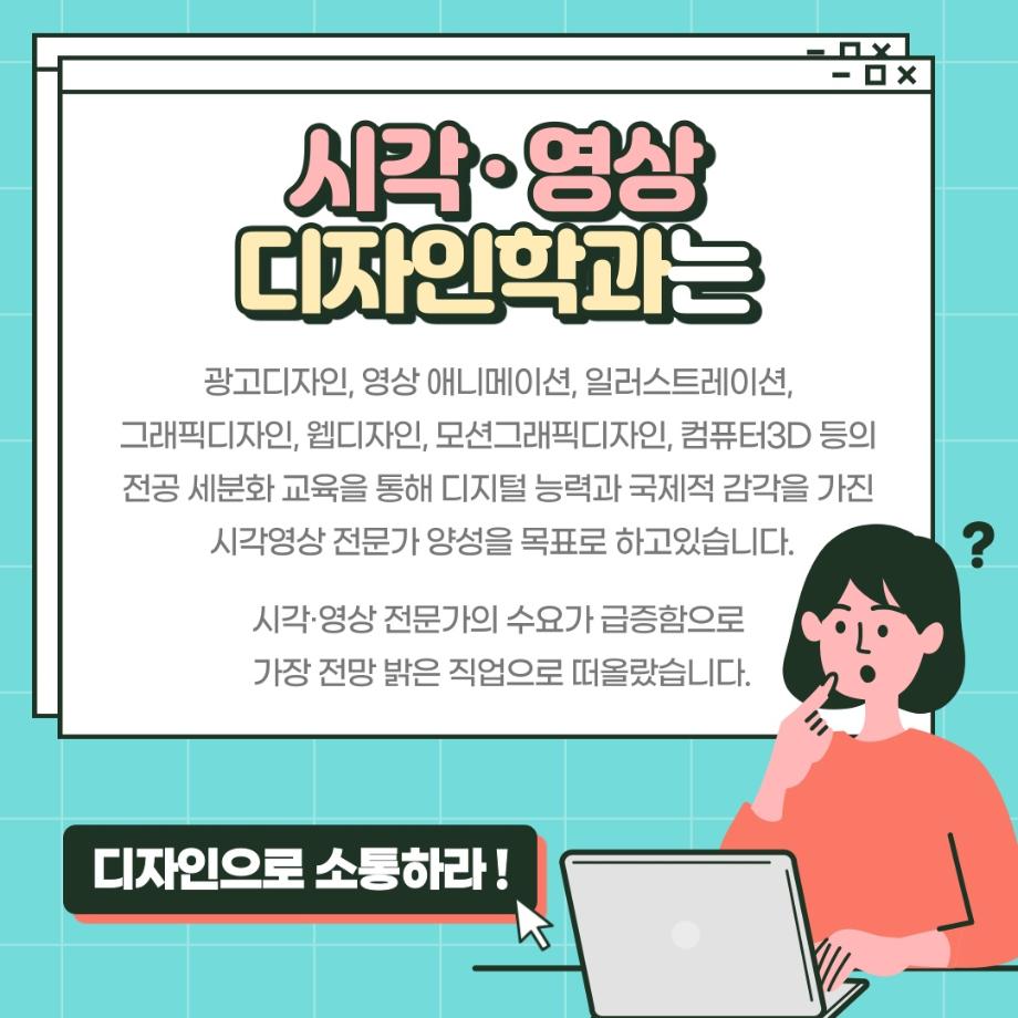 본문 시작 홈으로 학과자랑 학과소개 학과과정 시영소식 입학/취업 AI 학과자랑 SNS소통 홈페이지가이드 갤러리 학과자랑 갤러리 공모전 동아리 졸업전시회 갤러리 페이스북 트위터 프린트 시각영상디자인학과 알아보기~ 시각영상디자인학과 3229 2021-12-31 시각영상디자인학과 알아보기~ 목록 이전시각디자인과에서 시행한 융합캡스톤 이전명암산채건강마을벽화봉사 담당부서 : 시각영상디자인학과 담당자 : - 연락처 : 043-649-1726 최종수정일 : 2024-10-26 만족도조사 만족도 조사 이 페이지에서 제공하는 정보에 대하여 만족하시나요? 매우만족 만족 보통 불만족 매우불만족
