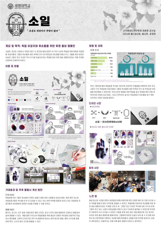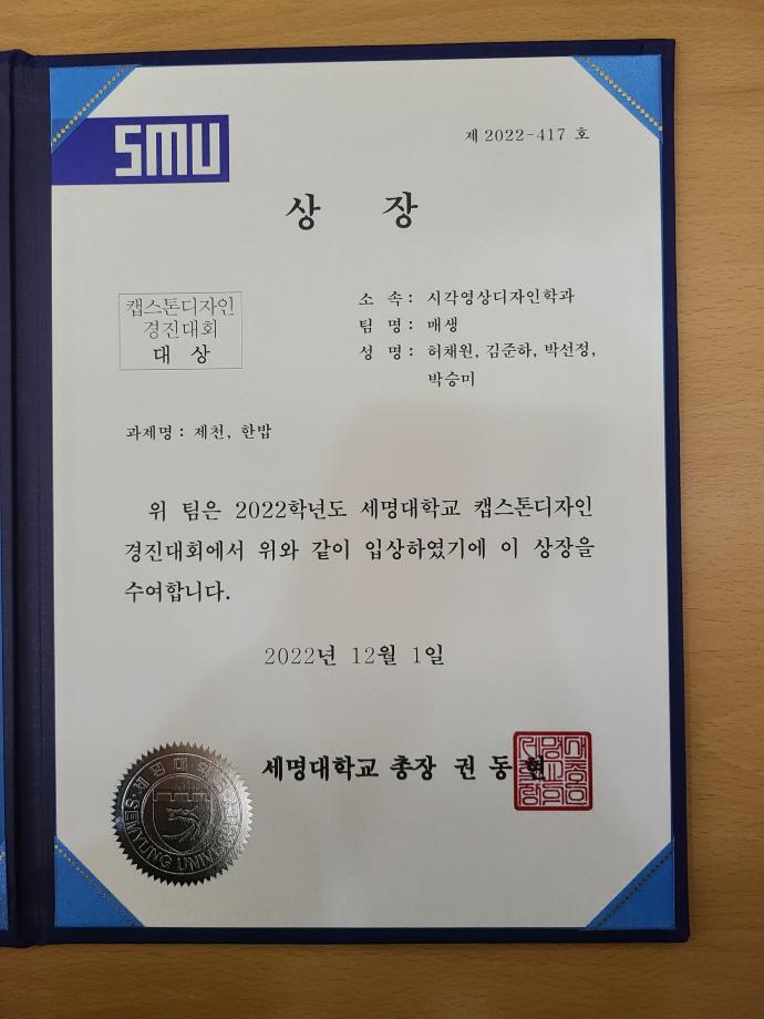 본문 시작 홈으로 학과자랑 학과소개 학과과정 시영소식 입학/취업 AI 학과자랑 SNS소통 홈페이지가이드 갤러리 학과자랑 갤러리 공모전 동아리 졸업전시회 갤러리 페이스북 트위터 프린트 2022학년도 캡스톤디자인 경진대회 - 대상/우수상 수상 시각영상디자인학과 10906 2022-12-10 2022학년도 캡스톤디자인 경진대회 - 대상/우수상 수상 본교 2021-2학기, 2022-1학기 캡스톤디자인 운영 학부(과) 대상으로 심사하여, 12월 1일 우리 학과 4학년 3팀이 본선에 올라가 그중에서, 매생팀(대상-제천,한밥)과 츄델팀(우수상-아잉)이 좋은 성적을 거두었습니다. 신나유팀(소일)도 본선 진출로 대회에 함께 하였습니다. 모두 모두 축하합니다. 목록 이전우리 학과를 모두 보여줄게! <시각·영상디자인학과 편> 다음 포탈시스템에 등장한 스타 세룡이 담당부서 : 시각영상디자인학과 담당자 : - 연락처 : 043-649-1726 최종수정일 : 2024-10-26 만족도조사 만족도 조사 이 페이지에서 제공하는 정보에 대하여 만족하시나요? 매우만족 만족 보통 불만족 매우불만족