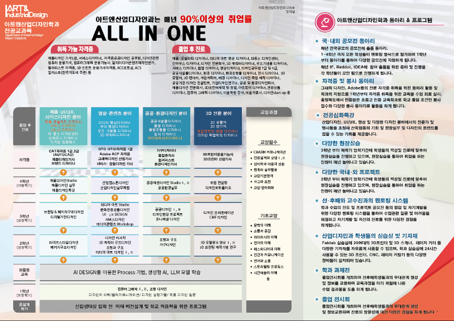 본문 시작 홈으로 학과생활 학과소개 교수소개 교과과정 학과생활 홈페이지가이드 사진게시판 공지사항 사진게시판 전공자료실 동아리 학과행사 사진게시판 페이스북 트위터 프린트 [브로셔] 산업디자인학과가 아트&산업디자인학과로 새롭게 태어납니다. 산업디자인학과 832 2025-06-12 목록 이전[공모전] 제60회 대한민국 디자인 전람회 다음 [배낭여행] 2025 세명대학교 자기설계 해외배낭연수 발대식 담당부서 : 산업디자인학과 담당자 : - 연락처 : 043-649-1436 최종수정일 : 2024-10-26 만족도조사 만족도 조사 이 페이지에서 제공하는 정보에 대하여 만족하시나요? 매우만족 만족 보통 불만족 매우불만족