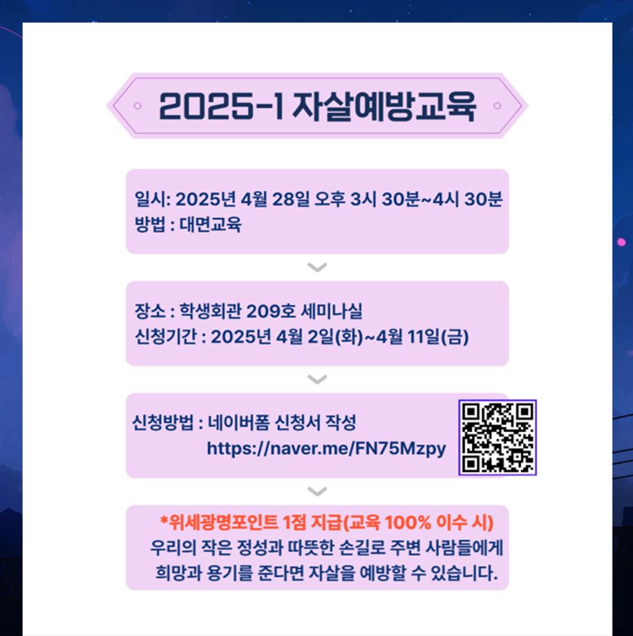 본문 시작 홈으로 학과생활 학과소개 교수소개 교과과정 학과생활 홈페이지가이드 사진게시판 공지사항 사진게시판 전공자료실 동아리 학과행사 사진게시판 페이스북 트위터 프린트 [CHARM케어상담센터] 2025학년도 1학기 자살예방교육 실시 산업디자인학과 1247 2025-04-03 목록 이전[학생처] 제10회 커뮤니티 페스티벌 다음 [산디과] 세명대학교 창업몰 OPEN_학교 기념물 제작 및 판매 담당부서 : 산업디자인학과 담당자 : - 연락처 : 043-649-1436 최종수정일 : 2024-10-26 만족도조사 만족도 조사 이 페이지에서 제공하는 정보에 대하여 만족하시나요? 매우만족 만족 보통 불만족 매우불만족