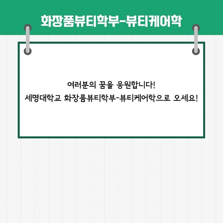본문 시작 홈으로 커뮤니티 학과소개 교수소개 학과과정 커뮤니티 대학원 홈페이지가이드 포토갤러리 공지사항 채용정보 포토갤러리 Youtube 바로가기 Instargram 바로가기 Blog 바로가기 Facebook 바로가기 포토갤러리 페이스북 트위터 프린트 세명대학교 화장품뷰티학부(뷰티케어학) 2022학년도 정시모집 안내 (2) 뷰티케어학 2149 2022-01-14 뷰티케어학 2022학년도 정시모집 안내입니다~! 목록 이전세명대학교 화장품뷰티학부(뷰티케어학) 2022학년도 정시모집 안내 (1) 다음 RC관 2층 스킨케어 실습실