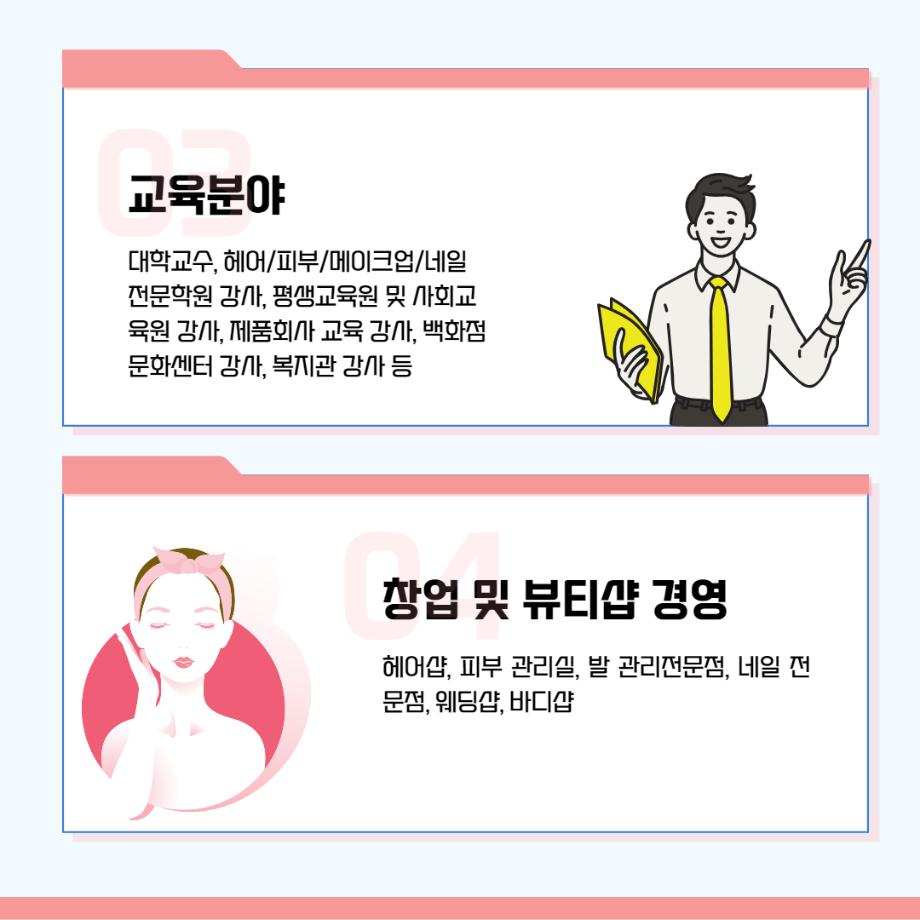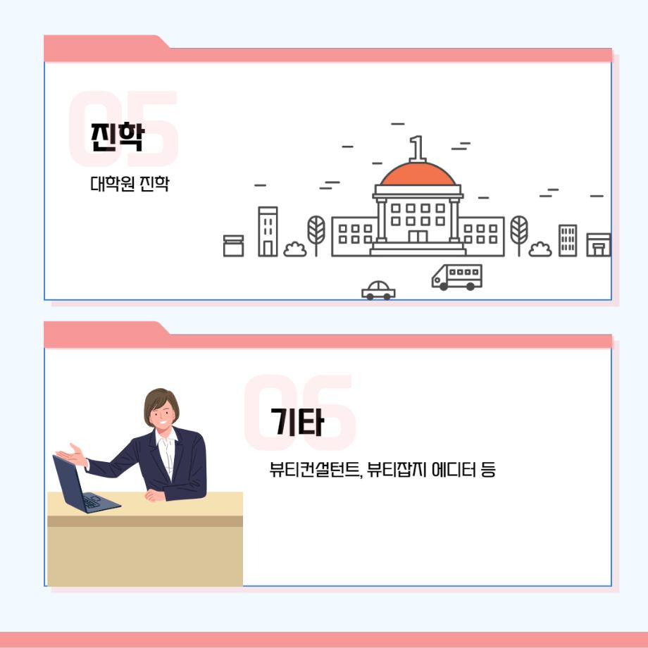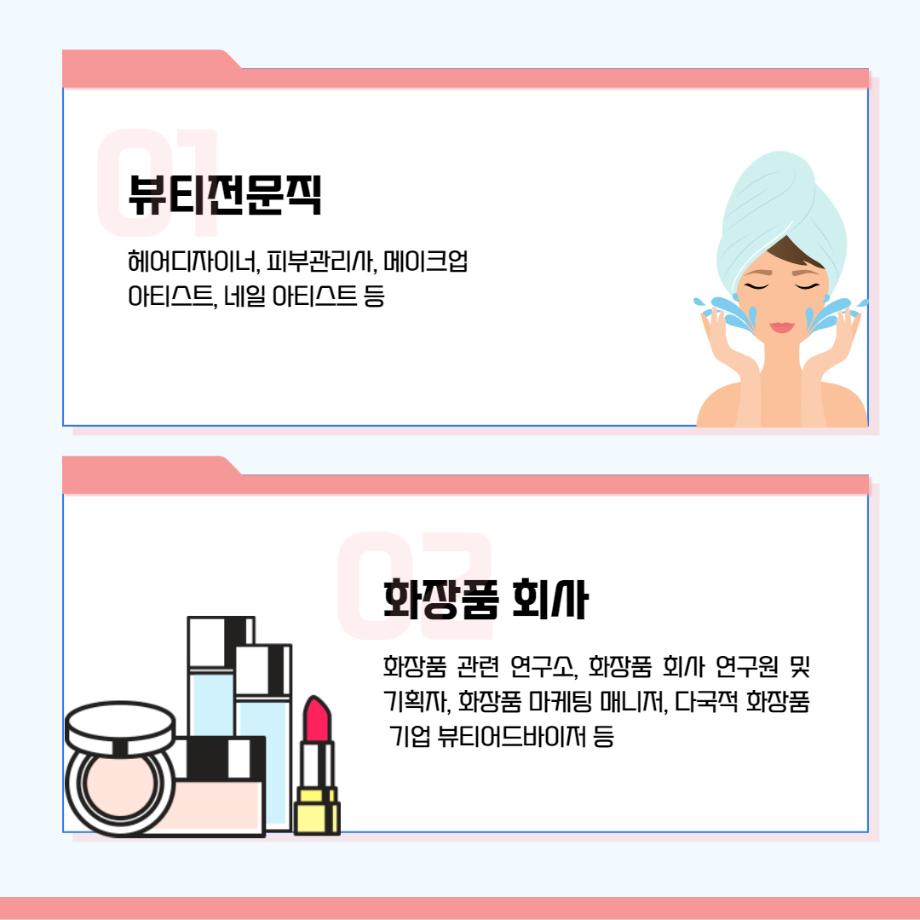 본문 시작 홈으로 커뮤니티 학과소개 교수소개 학과과정 커뮤니티 대학원 홈페이지가이드 포토갤러리 공지사항 채용정보 포토갤러리 Youtube 바로가기 Instargram 바로가기 Blog 바로가기 Facebook 바로가기 포토갤러리 페이스북 트위터 프린트 뷰티케어학 전공 졸업 후 진로 뷰티케어학 2312 2022-01-24 뷰티케어학부 졸업 후 진로 안내 입니다! 목록 이전🌹JUNO 현장실습🌹 다음 세명대학교 뷰티케어학과 졸업시 미용사 자격증/면허증 취득 가능!!