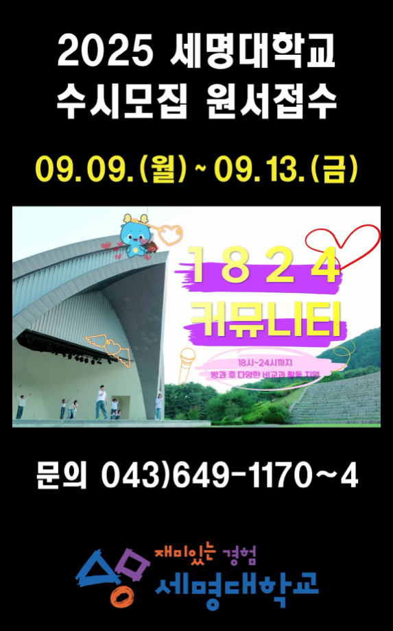 본문 시작 홈으로 커뮤니티 학과소개 교수소개 학과과정 커뮤니티 대학원 홈페이지가이드 포토갤러리 공지사항 채용정보 포토갤러리 Youtube 바로가기 Instargram 바로가기 Blog 바로가기 Facebook 바로가기 포토갤러리 페이스북 트위터 프린트 09.09 ~ 09.13 세명대학교 수시모집 기긴입니다. 뷰티케어학과 1929 2024-08-26 벌써 한 해의 절반이 넘게 지나가고 더위가 조금씩 가시니 또 다시 입시철이 다가왔네요! 세명대학교만의 특색있는 활동들과 원서접수에 관하여 알아볼까요?? 목록 이전뷰티케어학과 22학번 이수연학생이 미용사(네일)국가자격증 취득을 하였습니다~ 다음 예비smu뷰티케어학과 학생들 반가워요!!