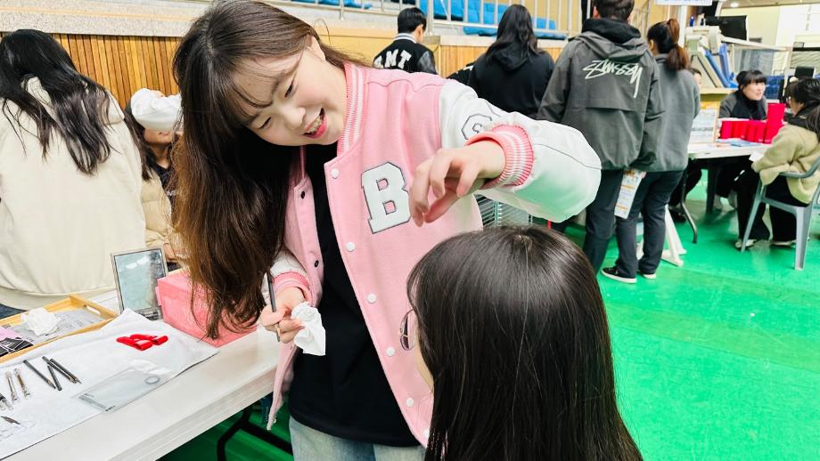본문 시작 홈으로 커뮤니티 학과소개 교수소개 학과과정 커뮤니티 대학원 홈페이지가이드 포토갤러리 공지사항 채용정보 포토갤러리 Youtube 바로가기 Instargram 바로가기 Blog 바로가기 Facebook 바로가기 포토갤러리 페이스북 트위터 프린트 2024 청소년 빅콘서트, 행운을 부르는 예쁜 속눈썹 만들기! 뷰티케어학과 2138 2024-11-27 예쁜 눈썹 마음에 드시나요 ~!? 뷰티케어학과 학생들의 웃음과 행운을 나눠드리며 예쁜 눈썹까지 선물로 드립니다! 목록 이전다양한 탈색법을 비교해보았어요~ 다음 세명대학교 2025학년도 수시모집 충원합격자 발표/등록 안내