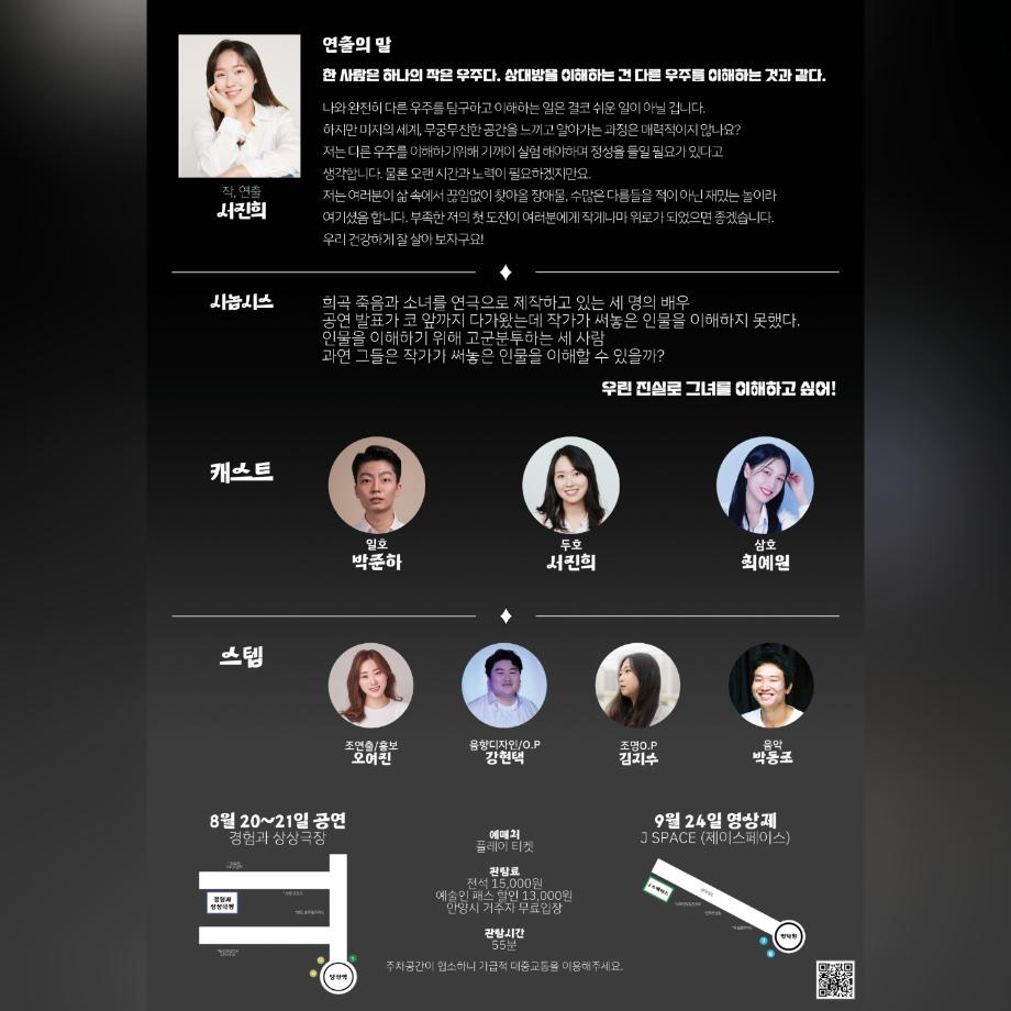 🌌 본 공연은 3인극으로 진행되며, 관람시간은 55분입니다!