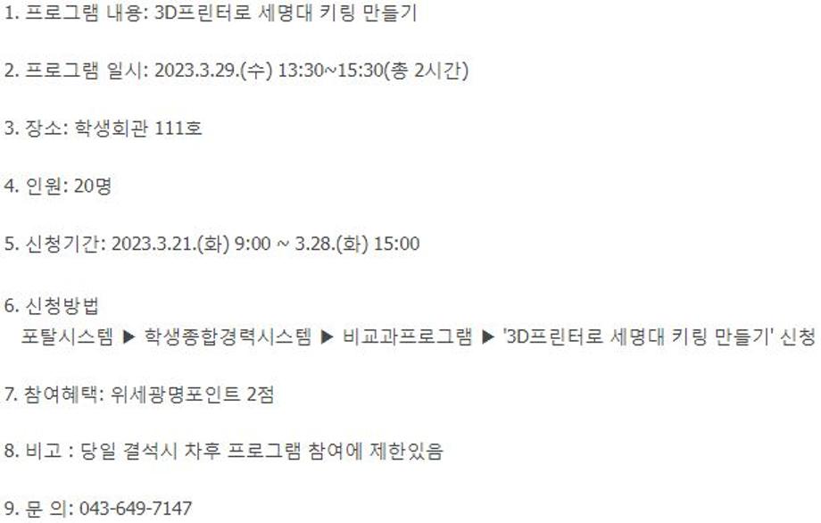 본문 시작 홈으로 커뮤니티 학과소개 입학정보 교수소개 학과과정 커뮤니티 공연예매 안내 홈페이지가이드 포토갤러리 공지사항 포토갤러리 작품DB 동아리 학사일정 학생회 포토갤러리 페이스북 트위터 프린트 3D 프린터로 세명대 키링 만들기 연기예술학과 2652 2023-03-20 3D 프린터로 세명대 키링 만들기 목록 이전2023학년도 1학기 FUN러닝프렌즈 다음 극단 각인각색 인큐베이팅 공연 - 3/4 (사분의 삼) 공연 성료 담당부서 : 연기예술학과 담당자 : - 연락처 : 043-649-1733 최종수정일 : 2024-10-26 만족도조사 만족도 조사 이 페이지에서 제공하는 정보에 대하여 만족하시나요? 매우만족 만족 보통 불만족 매우불만족