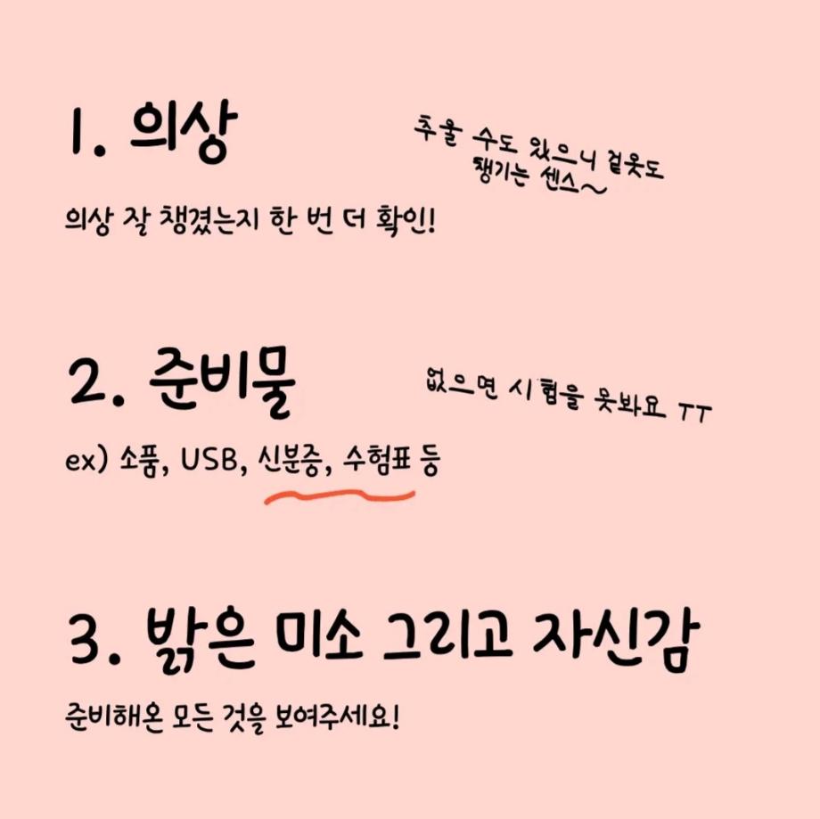 시험 중간에 실수해도 괜찮으니🙆 자신감을 가지고 시험보면 분명 좋은 결과가 있을 거에요😊 끝까지 화이팅!!👊