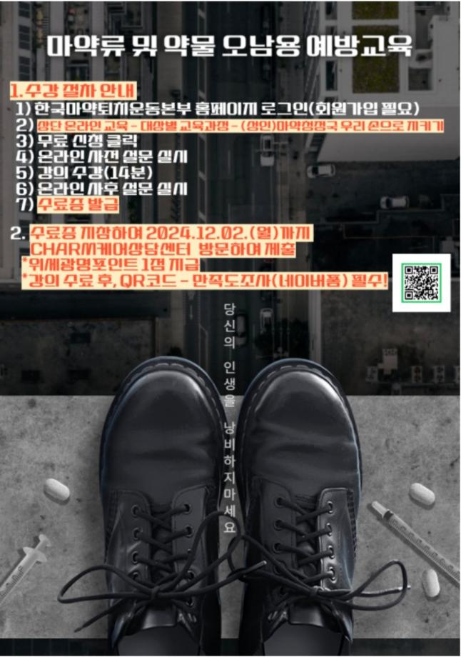 본문 시작 홈으로 커뮤니티 학과소개 입학정보 교수소개 학과과정 커뮤니티 공연예매 안내 홈페이지가이드 포토갤러리 공지사항 포토갤러리 작품DB 동아리 학사일정 학생회 포토갤러리 페이스북 트위터 프린트 2024학년도 2학기 마약중독 예방교육 실시 안내 연기예술학과 2779 2024-09-03 . 목록 이전2024년 세명대학교 연기예술학과 개강총회 다음 세명대학교 연기예술학과 수시모집 담당부서 : 연기예술학과 담당자 : - 연락처 : 043-649-1733 최종수정일 : 2024-10-26 만족도조사 만족도 조사 이 페이지에서 제공하는 정보에 대하여 만족하시나요? 매우만족 만족 보통 불만족 매우불만족