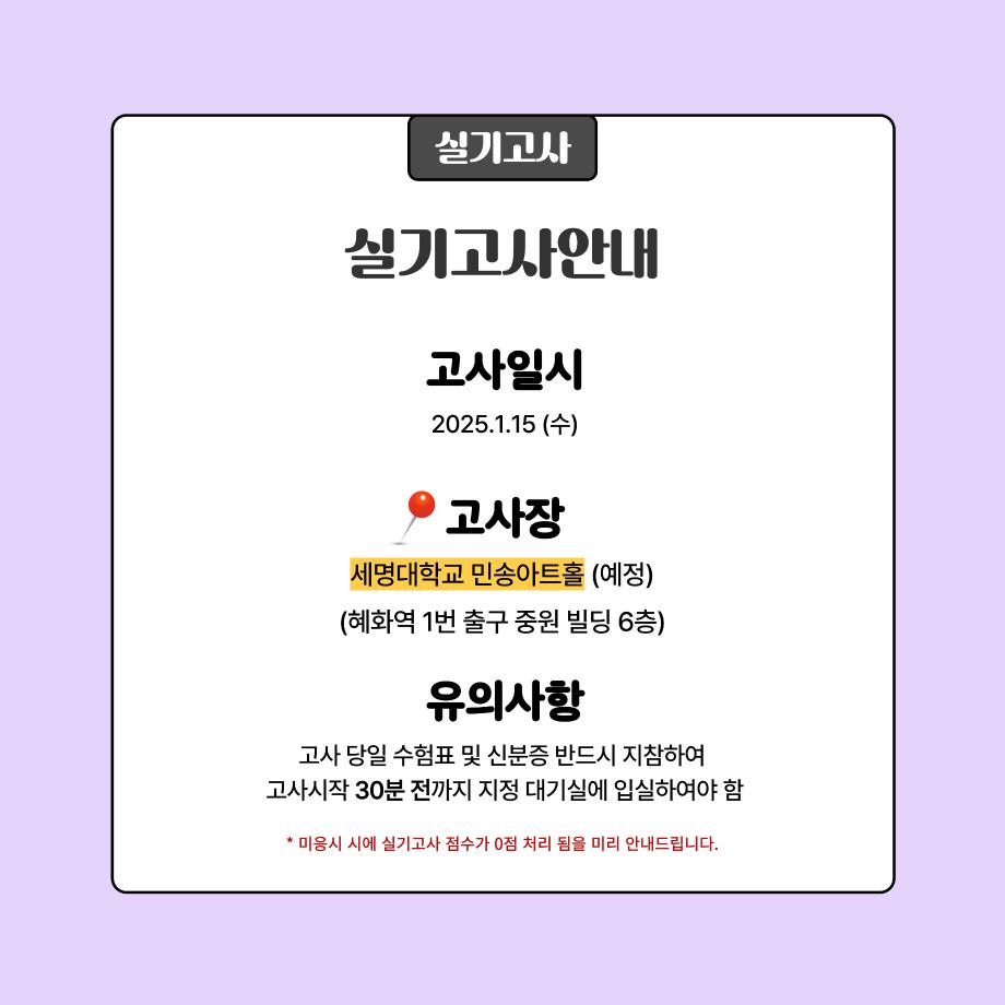 고사 안내는 25.01.10(금) 본교 홈페이지를 통해 확인할 수 있습니다.