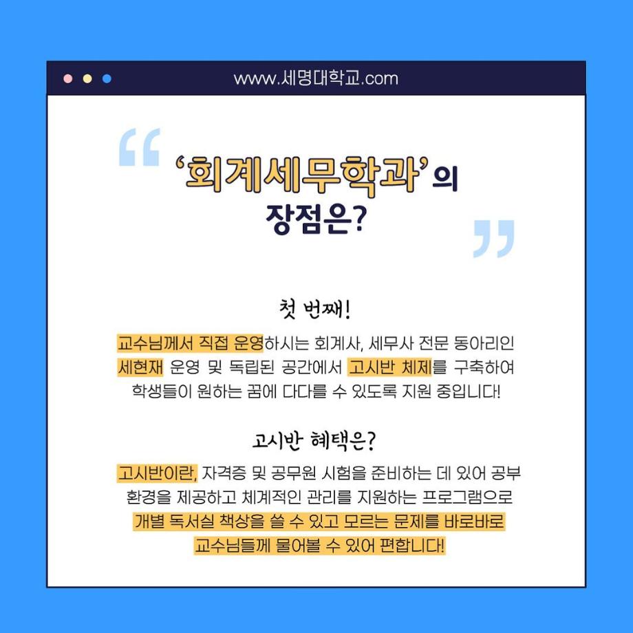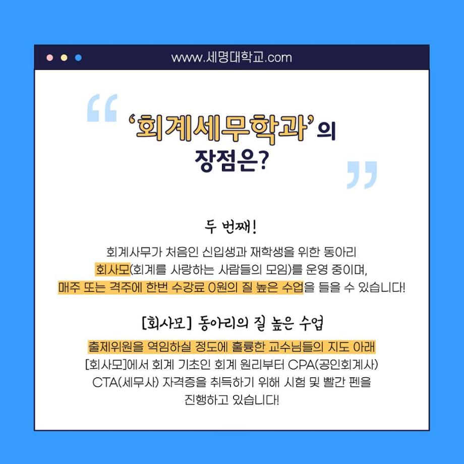 본문 시작 홈으로 학과소식 학과소개 취업정보 교육과정 학과소식 홈페이지가이드 포토갤러리 공지사항 포토갤러리 학과이야기 학과행사 포토갤러리 페이스북 트위터 프린트 우리 학과를 모두 보여줄게_회계세무학과 회계세무학과 1779 2022-09-14 우리 학과를 모두 보여줄게_'회계세무학과'편 목록 이전대학교 필수 술게임 다음 안영미의 대학 Pick! 세명대학교! 담당부서 : 회계세무학과 담당자 : - 연락처 : 043-649-1244 최종수정일 : 2024-10-26 만족도조사 만족도 조사 이 페이지에서 제공하는 정보에 대하여 만족하시나요? 매우만족 만족 보통 불만족 매우불만족