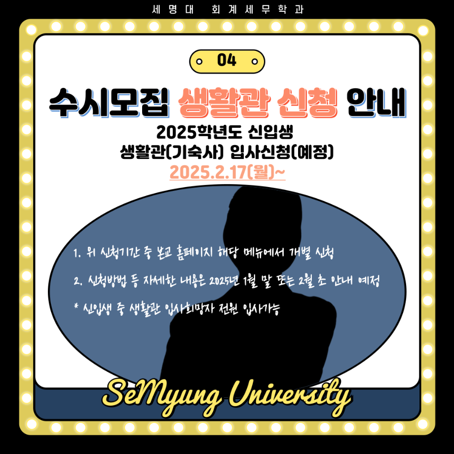 입시생을 위한 링크서비스 입학안내 수시모집 정시모집 편입학 Q&A 학과안내 성적자동산출 입시자료신청 대학소개 장학제도 >학생생활관(기숙사) >찾아오시는길 캠퍼스투어 >국제교류 >학군단(ROTC) >통학버스 입시생 레이어 닫기