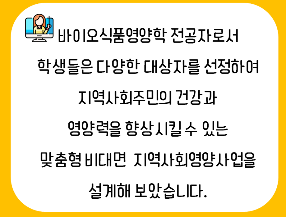 본문 시작 홈으로 커뮤니티 학부소개 진로·취업 교육과정 커뮤니티 대학원 입학상담 홈페이지가이드 갤러리 공지사항 갤러리 학생회 동문회 전공자료실 전공동아리 Youtube Instagram 갤러리 페이스북 트위터 프린트 2022 지역사회 영양학 종강 바이오식품영양학부 2089 2022-06-21 목록 이전2022 제6회 총장배 구기 종목대회 피구 우승 다음 2022 영양사 현장실습 종강 담당부서 : 바이오식품영양학부 담당자 : - 연락처 : 043-649-1430 최종수정일 : 2024-10-26 만족도조사 만족도 조사 이 페이지에서 제공하는 정보에 대하여 만족하시나요? 매우만족 만족 보통 불만족 매우불만족