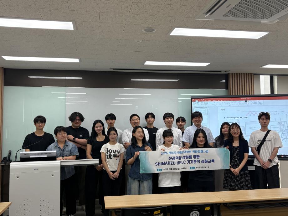 본문 시작 홈으로 커뮤니티 학부소개 진로·취업 교육과정 커뮤니티 대학원 입학상담 홈페이지가이드 갤러리 공지사항 갤러리 학생회 동문회 전공자료실 전공동아리 Youtube Instagram 갤러리 페이스북 트위터 프린트 학부역량강화사업 : HPLC 기기분석 심화교육(8/5-8/27) 바이오식품영양학부 1331 2025-09-06 학부역량강화사업 : HPLC 기기분석 심화교육 1) 일 시 : 2025. 08. 5(화) ~ 27(수), 주 2일 (총 8일간) 2) 대 상 : 바이오식품영양학부 재학생 11명 3) 강 사 : ㈜시마즈 선임연구원 및 바이오제약학부 교수님 등 목록 이전2025년도 중등 1급 정교사(영양교사) 자격연수 특강(박수진교수) 이전2025 자기설계 해외배낭연수(7/8~7/15, 호주) 담당부서 : 바이오식품영양학부 담당자 : - 연락처 : 043-649-1430 최종수정일 : 2024-10-26 만족도조사 만족도 조사 이 페이지에서 제공하는 정보에 대하여 만족하시나요? 매우만족 만족 보통 불만족 매우불만족