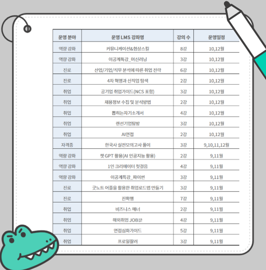 본문 시작 홈으로 We can 취업 매력적인 학과소개 흥미로운 교육과정 특별CC프로그램 We can 취업 따뜻한 커뮤니티 홈페이지가이드 취업지원프로그램 채용정보 취업지원프로그램 광고업계 회사소개 취업지원프로그램 페이스북 트위터 프린트 ★ [2025 대일플] 2025학년도 2학기 진로·취업 LMS 특강 안내 ★ 광고홍보학과 415 2025-09-05 대학일자리플러스센터 진로, 취업 지원 프로그램 목록 이전[디지털마케터취업교육생모집]한국디지털광고협회_취업연계교육 다음 ★위세광명포인트 5점★ 2025학년도 취업대비 영어인터뷰 교실 수강생 모집 안내