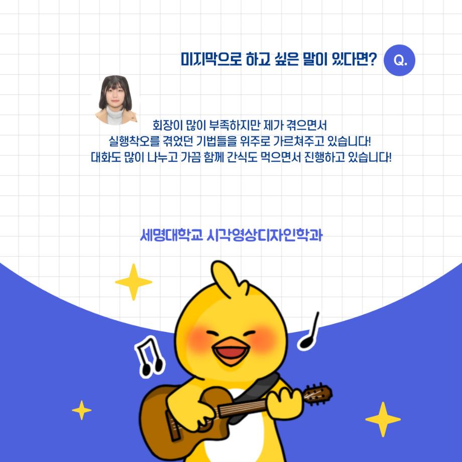 본문 시작 홈으로 학과자랑 학과소개 학과과정 시영소식 입학/취업 AI 학과자랑 SNS소통 홈페이지가이드 공모전 동아리 학과자랑 갤러리 공모전 동아리 졸업전시회 DesingN_us 외 DesingN_us 외 DesingN_us 외 페이스북 트위터 프린트 시각영상디자인학과 동아리 소개_미려 시각영상디자인학과 2192 2023-05-15 목록 이전시각영상디자인학과 동아리 소개_시영 다음 시각영상디자인학과 동아리 소개_스터디자인 담당부서 : 시각영상디자인학과 담당자 : - 연락처 : 043-649-1726 최종수정일 : 2024-10-26 만족도조사 만족도 조사 이 페이지에서 제공하는 정보에 대하여 만족하시나요? 매우만족 만족 보통 불만족 매우불만족
