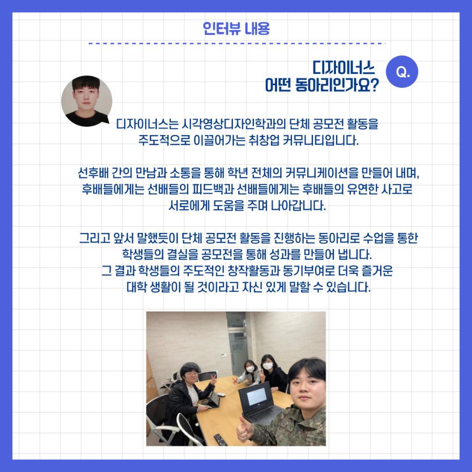 본문 시작 홈으로 학과자랑 학과소개 학과과정 시영소식 입학/취업 AI 학과자랑 SNS소통 홈페이지가이드 공모전 동아리 학과자랑 갤러리 공모전 동아리 졸업전시회 DesingN_us 외 DesingN_us 외 DesingN_us 외 페이스북 트위터 프린트 시각영상디자인학과 동아리 소개_디자이너스 시각영상디자인학과 2716 2023-05-15 목록 이전시각영상디자인학과 동아리 소개_스터디자인 다음 시영 동아리 활동 사진 담당부서 : 시각영상디자인학과 담당자 : - 연락처 : 043-649-1726 최종수정일 : 2024-10-26 만족도조사 만족도 조사 이 페이지에서 제공하는 정보에 대하여 만족하시나요? 매우만족 만족 보통 불만족 매우불만족
