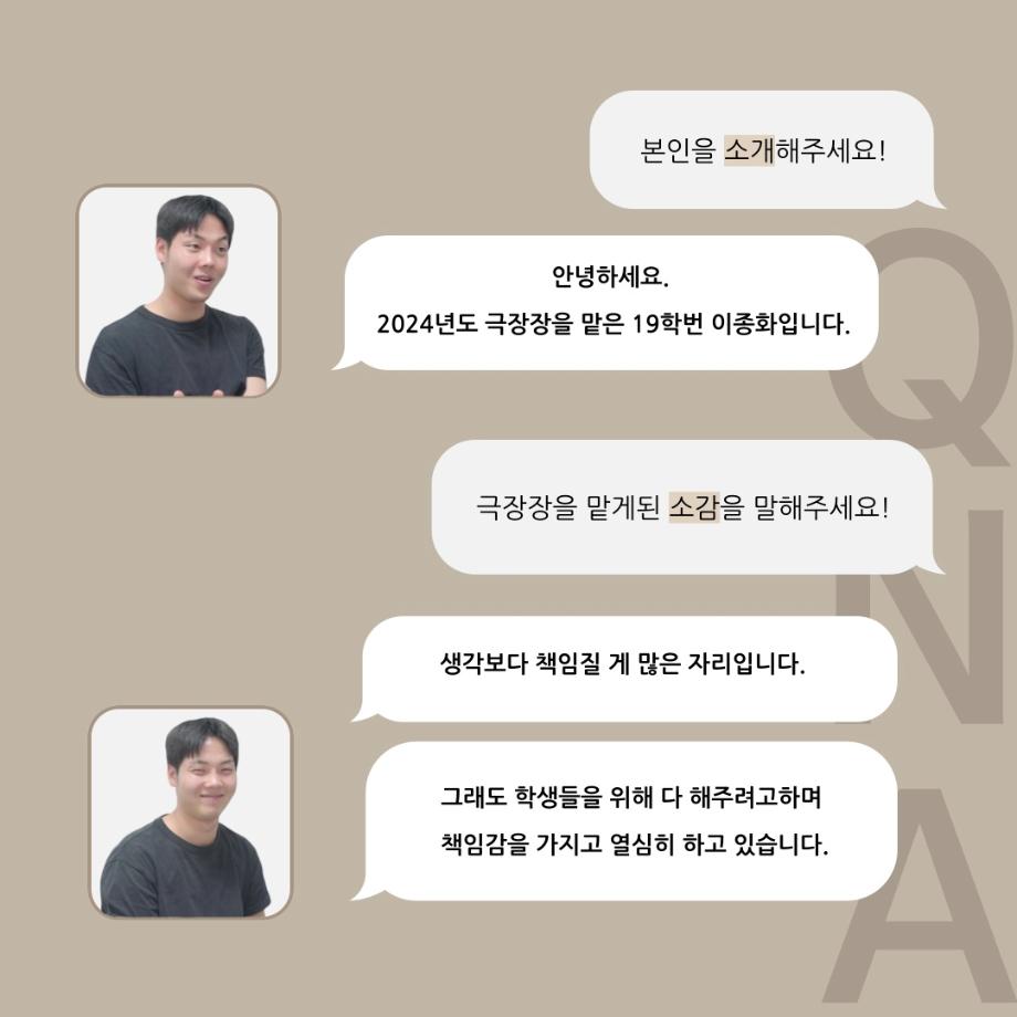 본문 시작 홈으로 커뮤니티 학과소개 입학정보 교수소개 학과과정 커뮤니티 공연예매 안내 홈페이지가이드 동아리 공지사항 포토갤러리 작품DB 동아리 학사일정 학생회 극장 스탭 동아리 무용 동아리 뮤지컬 동아리 극장 스탭 동아리 배우 훈련 동아리 극장 스탭 동아리 페이스북 트위터 프린트 ’품‘위있는 인’터뷰‘ - 24년도 극장장 <이종화> 연기예술학과 2490 2024-07-12 안녕하십니다. 24년도 학회 ‘품‘ 입니다. 학회 ‘품’의 세 번째 인터뷰로 세명대학교 연기예술학과 24학년도 극장장인 이종화 학우와 인터뷰 하는 시간을 가졌습니다. 극장장을 맡게된 소감과 극장은 어떤 의미가 있는지, 파트장과 학과생에게 전하고 싶은 말 등을 질문하는 시간을 가졌습니다. 앞으로 있을 인터뷰 컨텐츠인 ‘품터뷰’ 많은 사랑 부탁드립니다. 목록 이전세명대학교 연기예술학과 극장동아리 ‘짜스트’ - 무대, 조명 다음 ’품‘위있는 인’터뷰‘ - 24년도 무대장 <장보배> 만족도조사 만족도 조사 이 페이지에서 제공하는 정보에 대하여 만족하시나요? 매우만족 만족 보통 불만족 매우불만족
