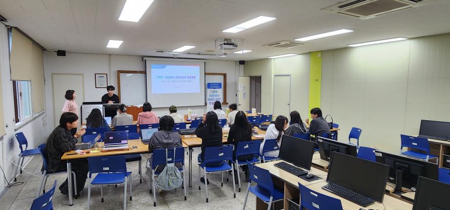 자유로운 공공디자인을 주제로 하여 (제천/충북)지역 (혹은 공모전 출품 지역 등 다른 지역까지 가능)과 상생할 수 있는 아이디어를 통해 프로젝트의 기획-컨셉-작업(운영)-결론 도출의 과정으로 하나의 프로젝트를 완료할 수 있는 능력을 배양하고 나아가 공공디자인 공모전 또는 관계 기관 제출을 목적으로 하는, '2024 콘텐츠스쿨 AI & 그래픽 스튜디오(그래픽) 상생하는 공공디자인 프로젝트'가 9월 21일 부터 시작해서 3주간 주말(토,일) 진행되어, 14명의 시각영상디자인학과 학생들이 참여하게 되었습니다.