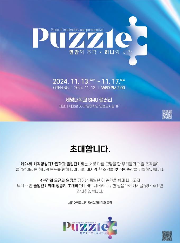 본문 시작 홈으로 시영소식 학과소개 학과과정 시영소식 입학/취업 AI 학과자랑 SNS소통 홈페이지가이드 학과행사 공지사항 학과행사 공모전 학생 인터뷰 학과행사 페이스북 트위터 프린트 2024 졸업전시회 오프닝 시각영상디자인학과 1962 2024-11-07 본교 캠퍼스에서 총장님을 모시고 11월 13일 오후2시에 본교 캠퍼스 smu갤러리에서 오프닝행사를 성대히 치렀습니다, 4학년 모두의 노고에 감사하고 다시 한번 졸전을 축하합니다 모바일 초대장 https://dodoring12.github.io/ 목록 이전2024 세명 콘텐츠 스쿨 콘텐츠 피칭 다음 햄버거데이 담당부서 : 시각영상디자인학과 담당자 : - 연락처 : 043-649-1726 최종수정일 : 2024-10-26 만족도조사 만족도 조사 이 페이지에서 제공하는 정보에 대하여 만족하시나요? 매우만족 만족 보통 불만족 매우불만족