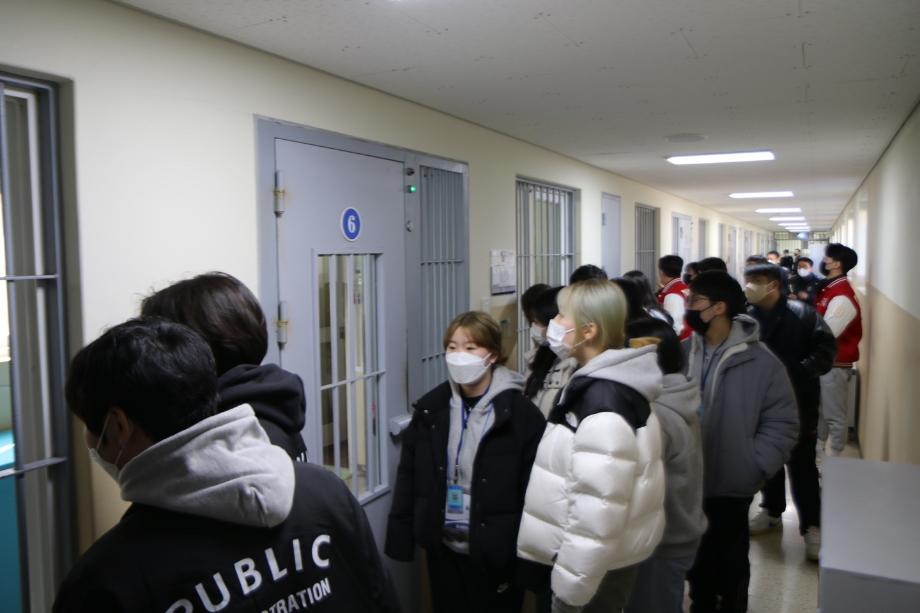 그리고 2일차에는 교수님들 소개, 학과소개, 레크레이션 등을 하면서 훨씬 가까워지는 시간을 보내고 이색적인 전공체험을 위해 영월 교도소에 방문 하였습니다 그 뒤에는 체육관에서 신입생 장기자랑 시간을 가졌습니다.