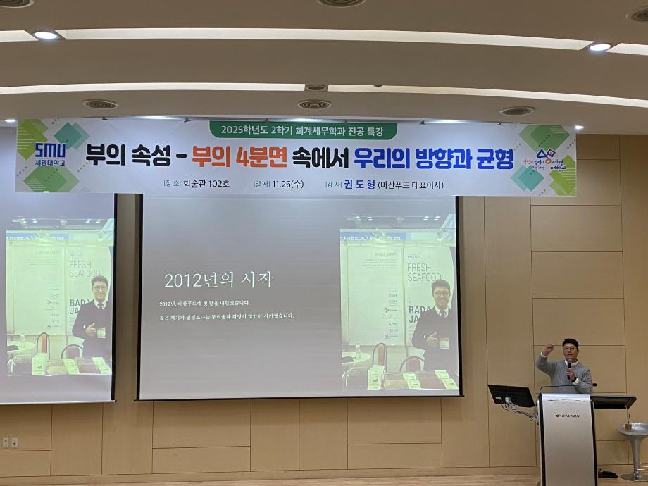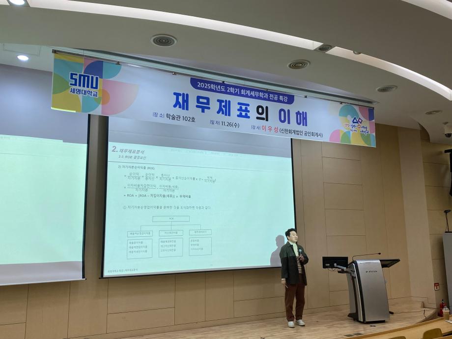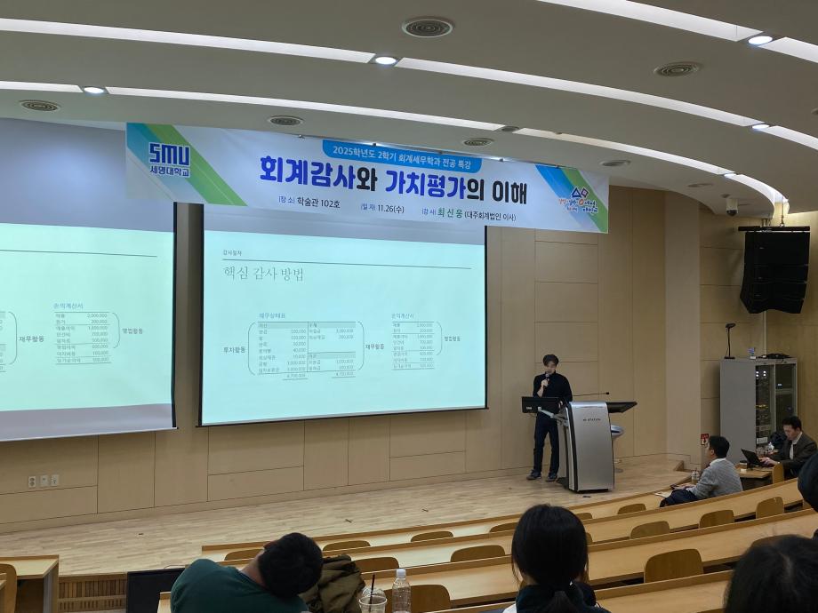 본문 시작 홈으로 학과소식 학과소개 취업정보 교육과정 학과소식 홈페이지가이드 학과행사 공지사항 포토갤러리 학과이야기 학과행사 학과행사 페이스북 트위터 프린트 2025학년도 2학기 회계세무학과 전공특강 회계세무금융학과 311 2025-11-27 2025학년도 2학기 회계세무학과 전공특강을 진행하였습니다~! 목록 이전2025학년도 2학기 회계세무학과 전문가 특강 다음 회계세무학과 종강총회 만족도조사 만족도 조사 이 페이지에서 제공하는 정보에 대하여 만족하시나요? 매우만족 만족 보통 불만족 매우불만족