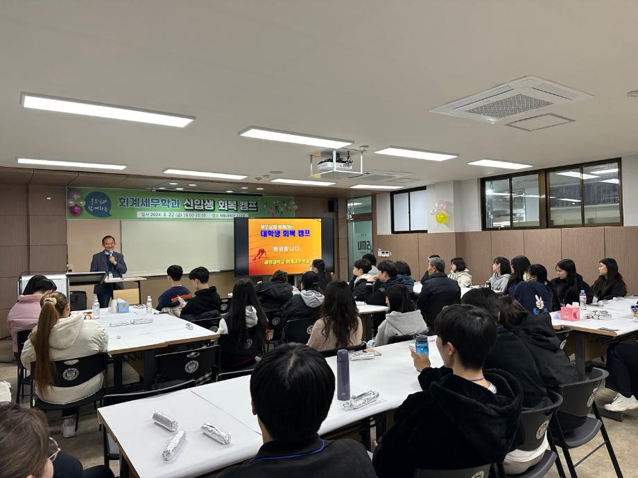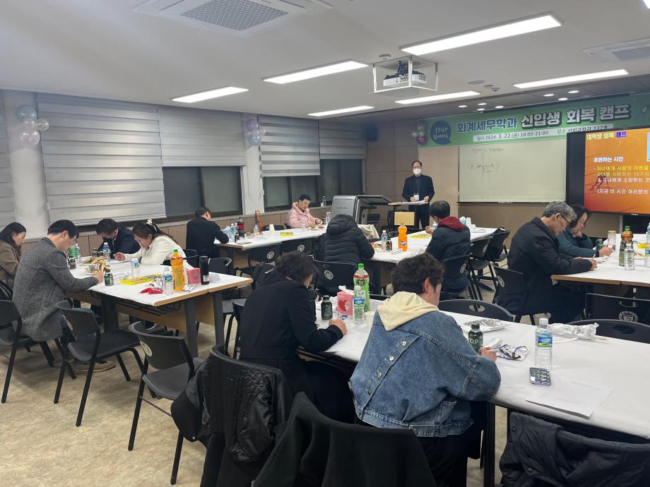 본문 시작 홈으로 학과소식 학과소개 취업정보 교육과정 학과소식 홈페이지가이드 학과행사 공지사항 포토갤러리 학과이야기 학과행사 학과행사 페이스북 트위터 프린트 2024학년도 회계세무학과 신입생 회복캠프 회계세무학과 1501 2024-03-28 2024년 3월 22일(금) 회계세무학과 신입생 회복캠프 목록 이전2024학년도 회계세무학과 신입생 환영회 다음 세명대학교 회계학과 졸업생 방문 만족도조사 만족도 조사 이 페이지에서 제공하는 정보에 대하여 만족하시나요? 매우만족 만족 보통 불만족 매우불만족