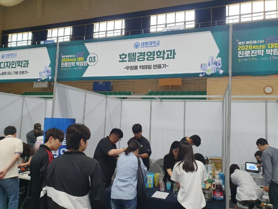 본문 시작 홈으로 학과소개 커뮤니티 학과소개 교육 홈페이지가이드 학과행사 학과장인사말 교수소개 학과행사 학과행사 페이스북 트위터 프린트 2026년 제천에듀페스타 대입진로진학 박람회_호텔경영학과 호텔경영학과 1026 2025-06-16 2026년 제천에듀페스타 대입진로진학 박람회_호텔경영학과 목록 이전2025년 교직이수 학생 교생실습_한국호텔관광고등학교 다음 2025년 세명대학교 하계 교직원 워크숍 만족도조사 만족도 조사 이 페이지에서 제공하는 정보에 대하여 만족하시나요? 매우만족 만족 보통 불만족 매우불만족