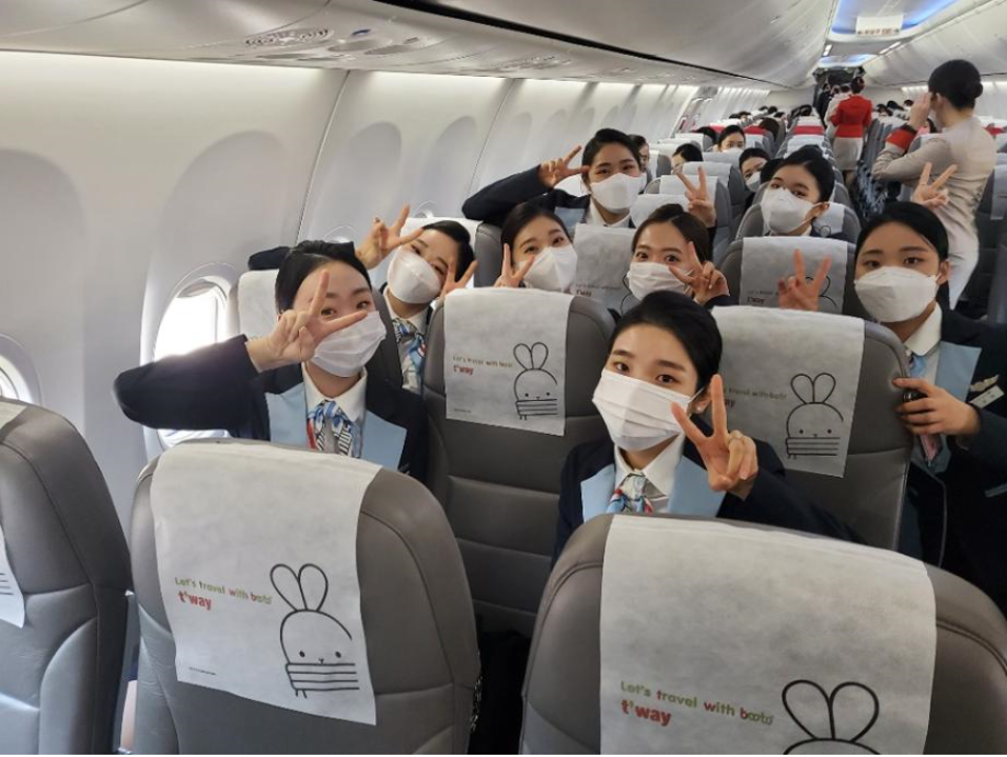 Tway Cabin crew Field Training은 대구에서 제주 구간을 약 2시간 동안 비행하면서 학생들이 국제선 서비스 절차를 실습하는 프로그램입니다.